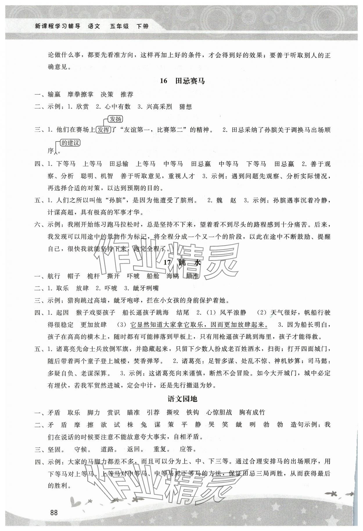 注:目前有些书本章节名称可能整理的还不是很完善,但都是按照顺序排列的,请同学们按照顺序仔细查找。练习册 2024年新课程学习辅导五年级语文下册人教版中山专版 答案主要是用来给同学们做完题方便对答案用的,请勿直接抄袭。