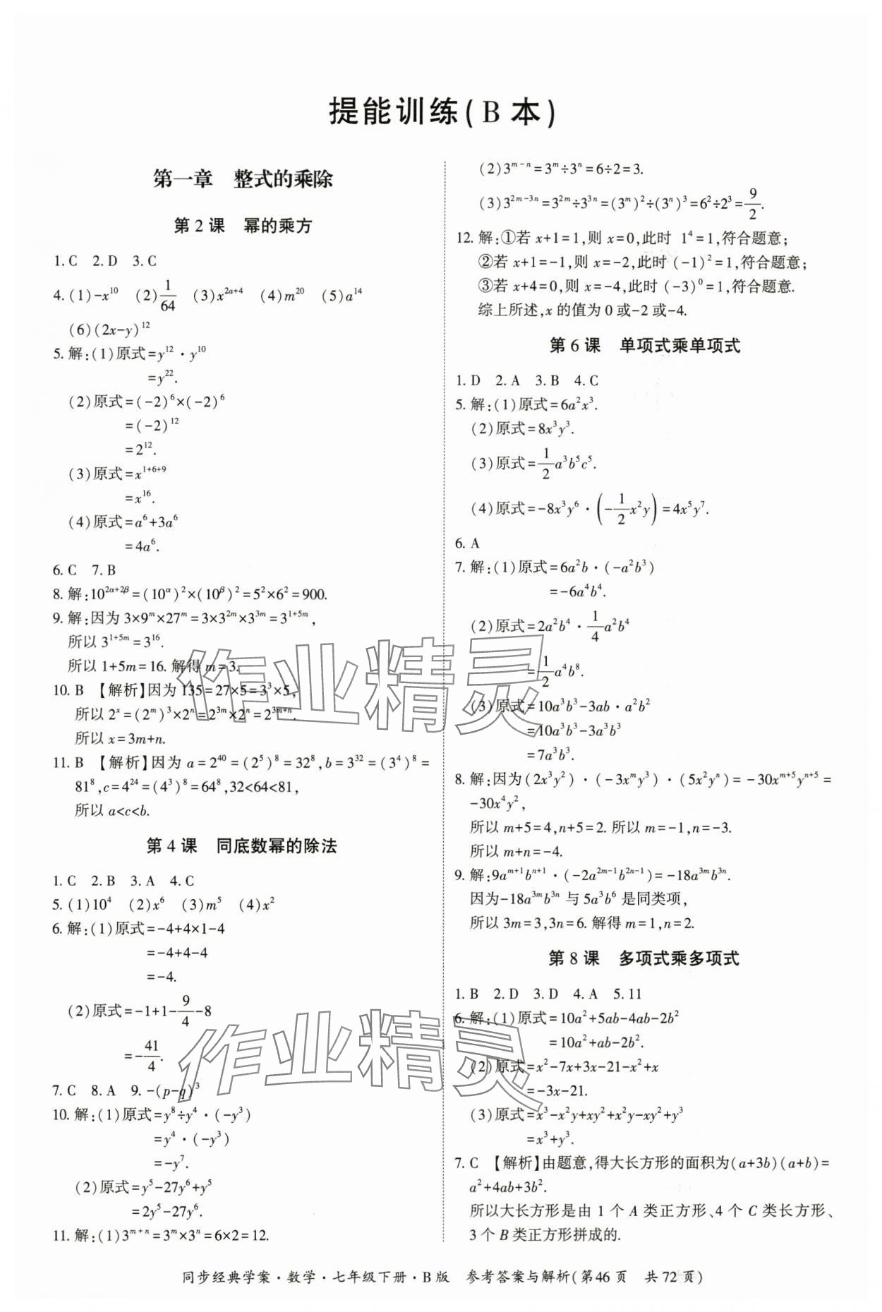 注:目前有些书本章节名称可能整理的还不是很完善,但都是按照顺序排列的,请同学们按照顺序仔细查找。练习册 2024年同步经典学案七年级数学下册北师大版 答案主要是用来给同学们做完题方便对答案用的,请勿直接抄袭。