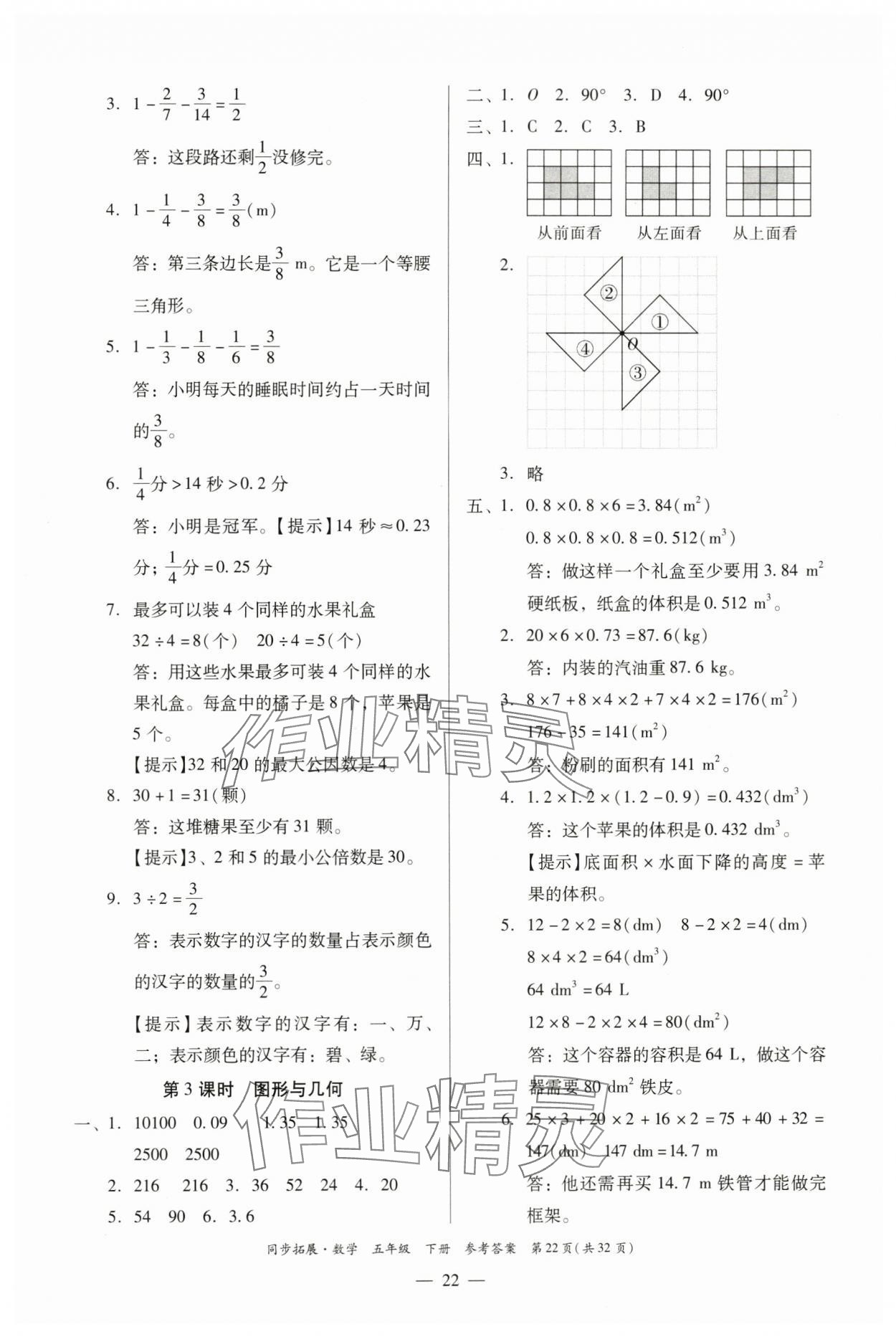 注:目前有些书本章节名称可能整理的还不是很完善,但都是按照顺序排列的,请同学们按照顺序仔细查找。练习册 2024年同步拓展五年级数学下册人教版中山专版 答案主要是用来给同学们做完题方便对答案用的,请勿直接抄袭。