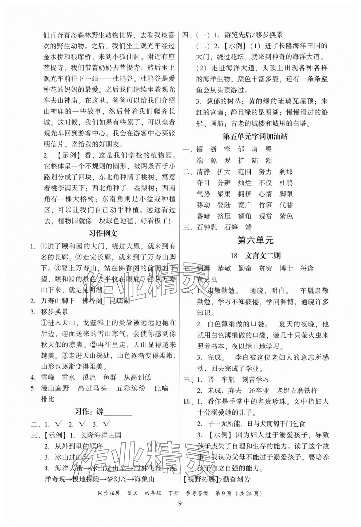 注:目前有些书本章节名称可能整理的还不是很完善,但都是按照顺序排列的,请同学们按照顺序仔细查找。练习册 2024年同步拓展四年级语文下册人教版中山专版 答案主要是用来给同学们做完题方便对答案用的,请勿直接抄袭。