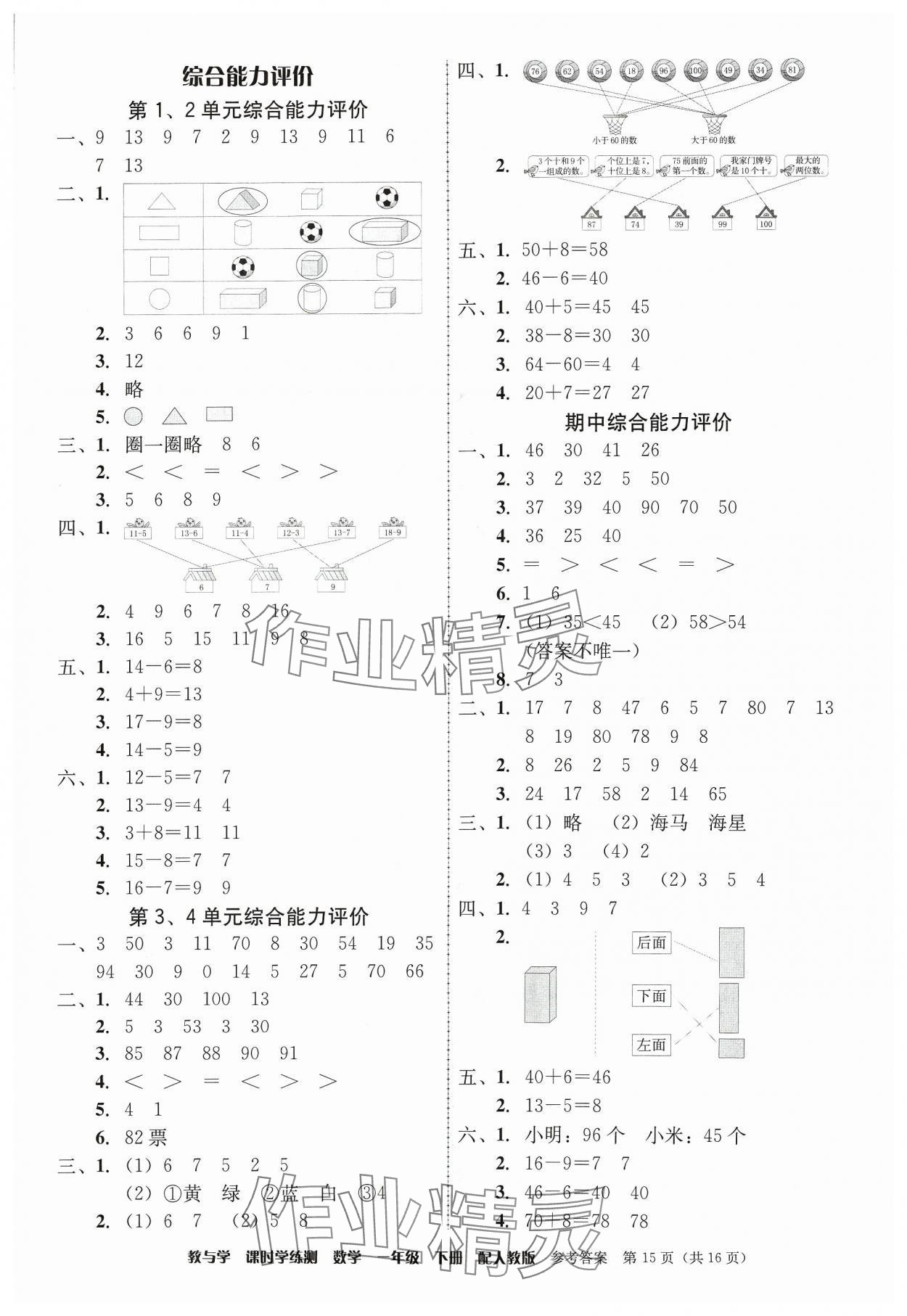 注:目前有些书本章节名称可能整理的还不是很完善,但都是按照顺序排列的,请同学们按照顺序仔细查找。练习册 2024年教与学课时学练测一年级数学下册人教版 答案主要是用来给同学们做完题方便对答案用的,请勿直接抄袭。