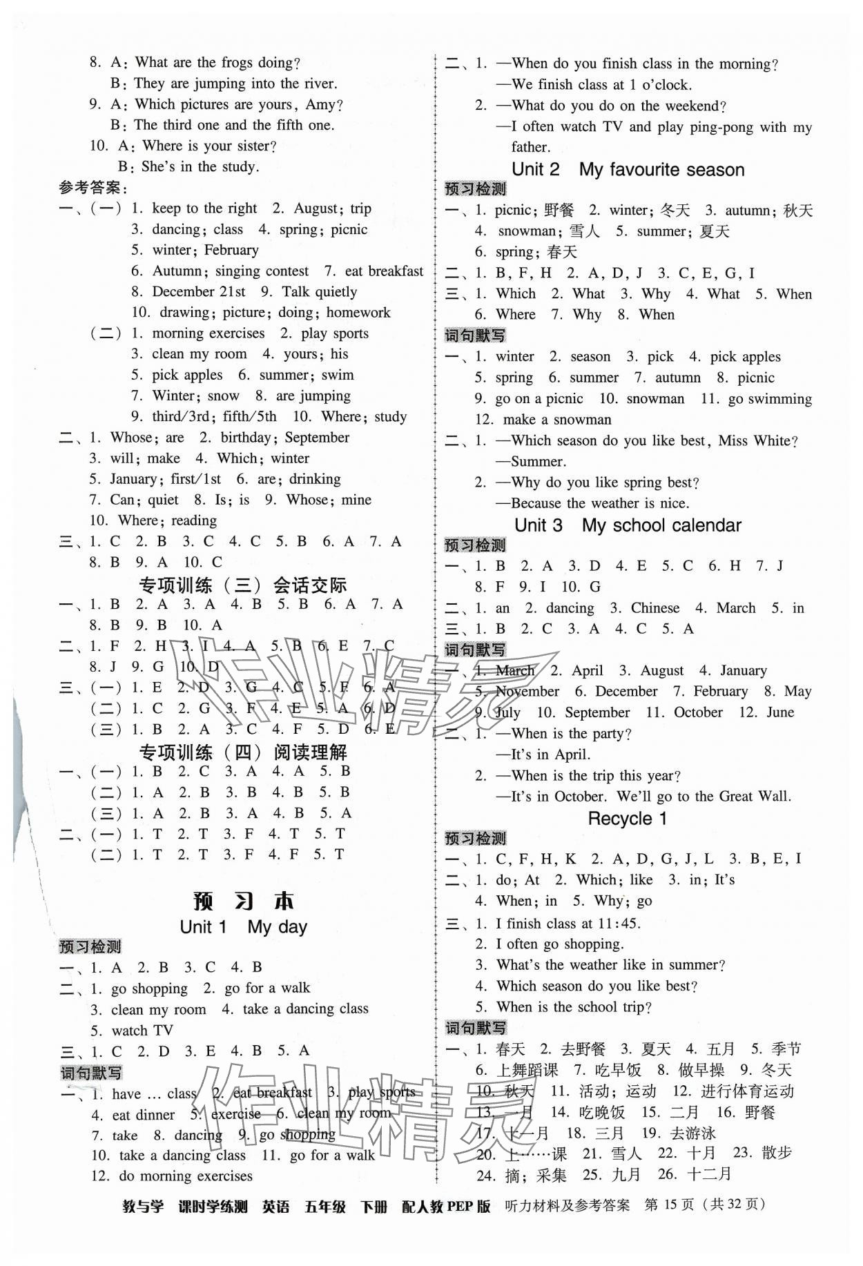 注:目前有些书本章节名称可能整理的还不是很完善,但都是按照顺序排列的,请同学们按照顺序仔细查找。练习册 2024年教与学课时学练测五年级英语下册人教版 答案主要是用来给同学们做完题方便对答案用的,请勿直接抄袭。