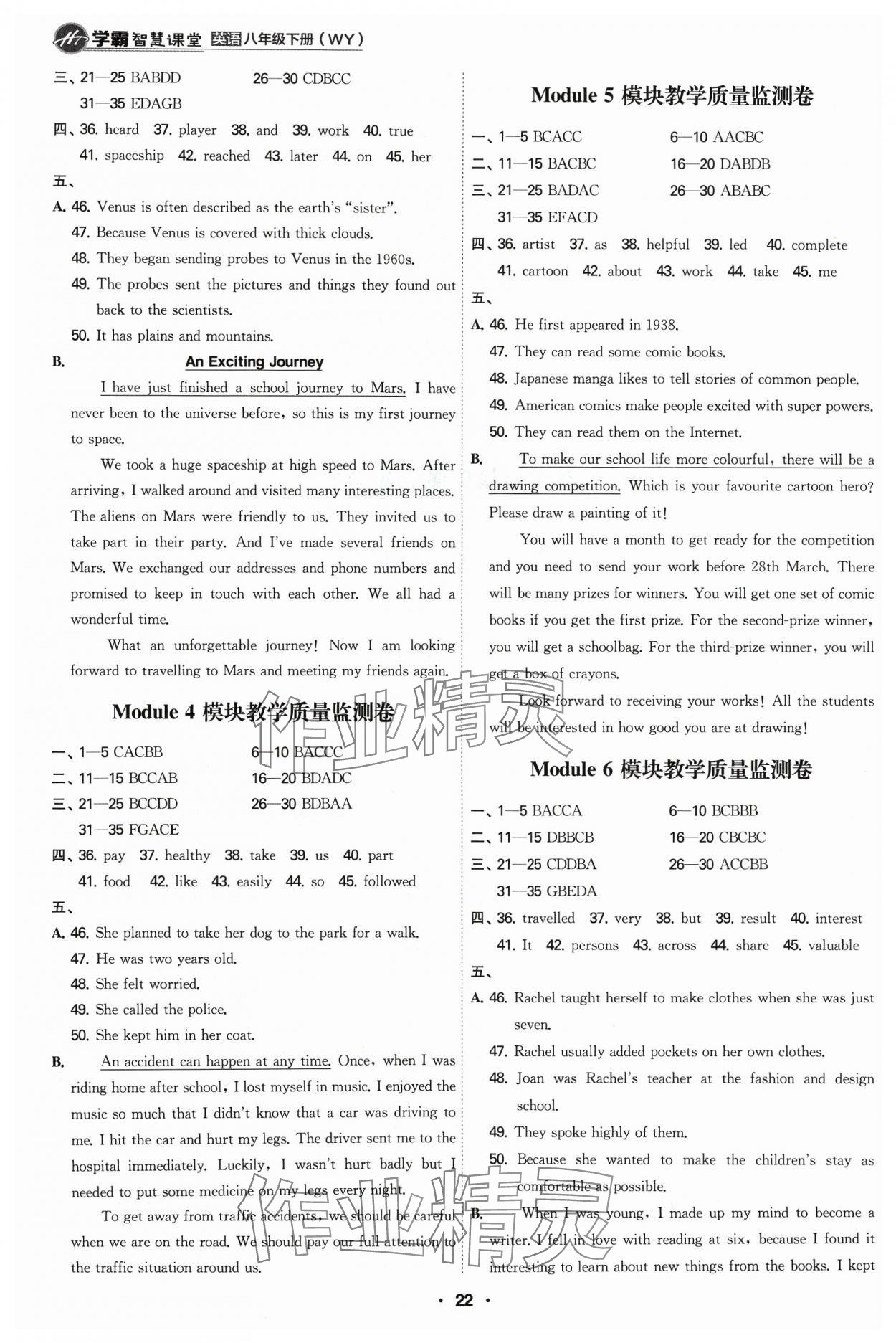 注:目前有些书本章节名称可能整理的还不是很完善,但都是按照顺序排列的,请同学们按照顺序仔细查找。练习册 2024年学霸智慧课堂八年级英语下册外研版 答案主要是用来给同学们做完题方便对答案用的,请勿直接抄袭。