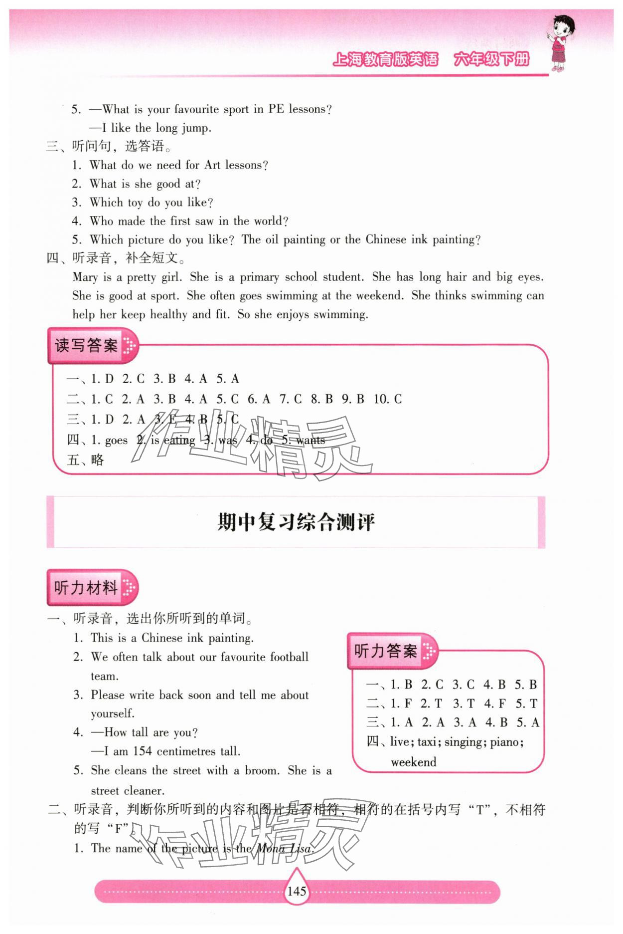 注:目前有些书本章节名称可能整理的还不是很完善,但都是按照顺序排列的,请同学们按照顺序仔细查找。练习册 2024年新课标两导两练高效学案六年级英语下册沪教版 答案主要是用来给同学们做完题方便对答案用的,请勿直接抄袭。