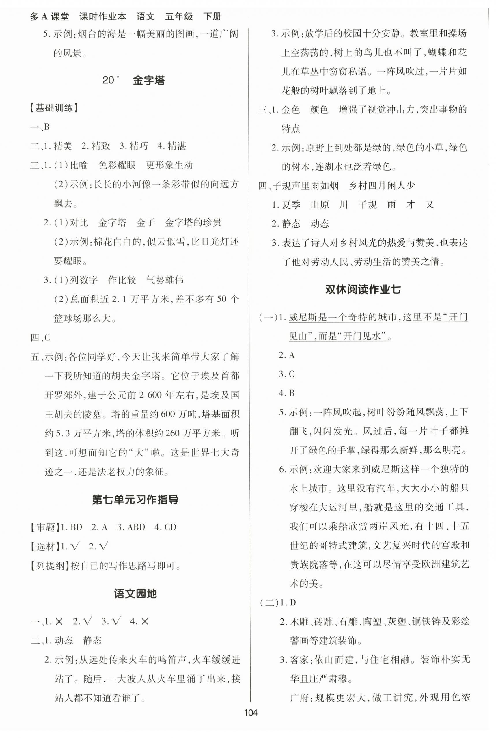 注:目前有些书本章节名称可能整理的还不是很完善,但都是按照顺序排列的,请同学们按照顺序仔细查找。练习册 2024年多A课堂课时作业本五年级语文下册人教版 答案主要是用来给同学们做完题方便对答案用的,请勿直接抄袭。