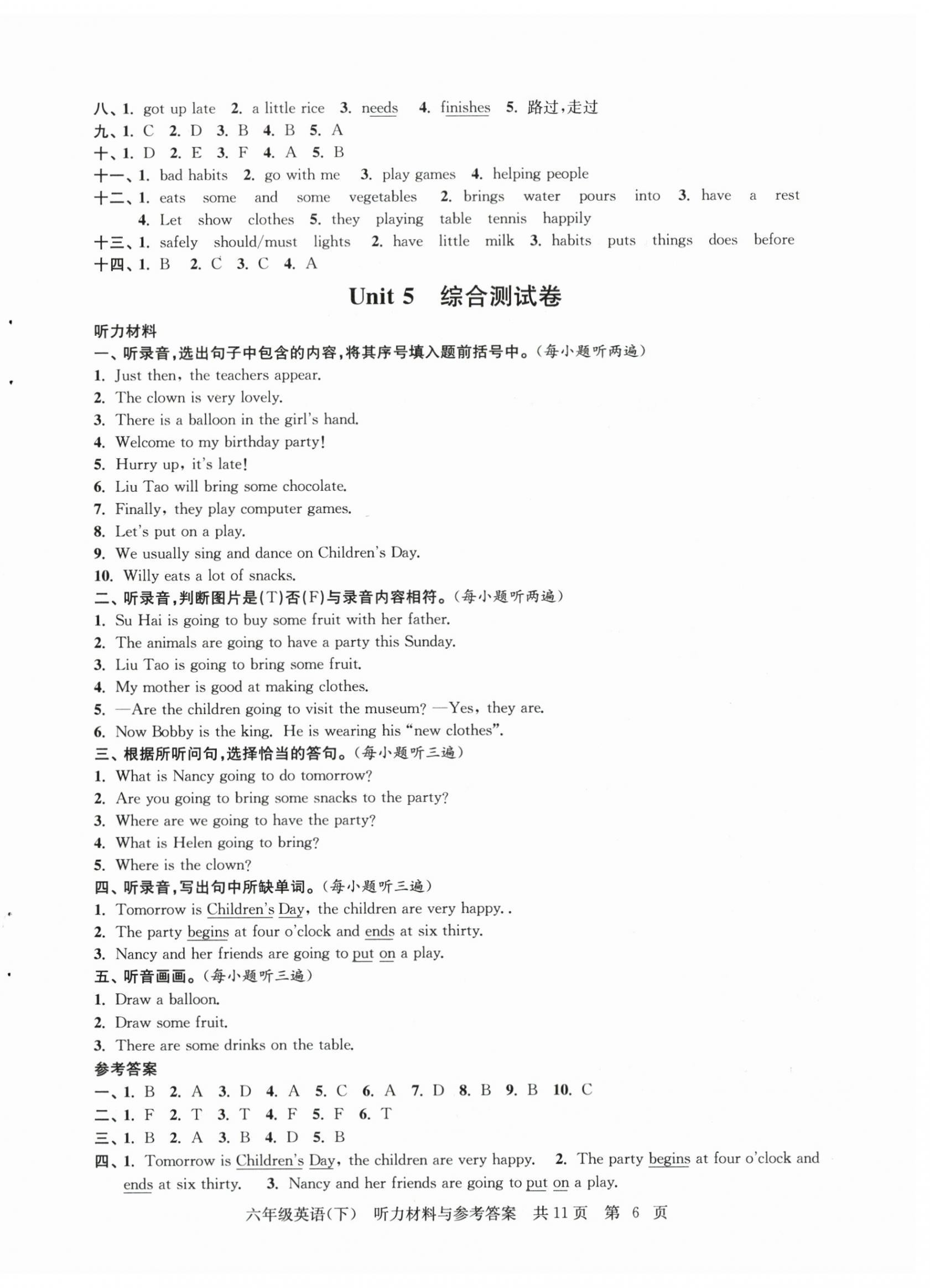 注:目前有些书本章节名称可能整理的还不是很完善,但都是按照顺序排列的,请同学们按照顺序仔细查找。练习册 2024年伴你学单元达标测试卷六年级英语下册译林版 答案主要是用来给同学们做完题方便对答案用的,请勿直接抄袭。