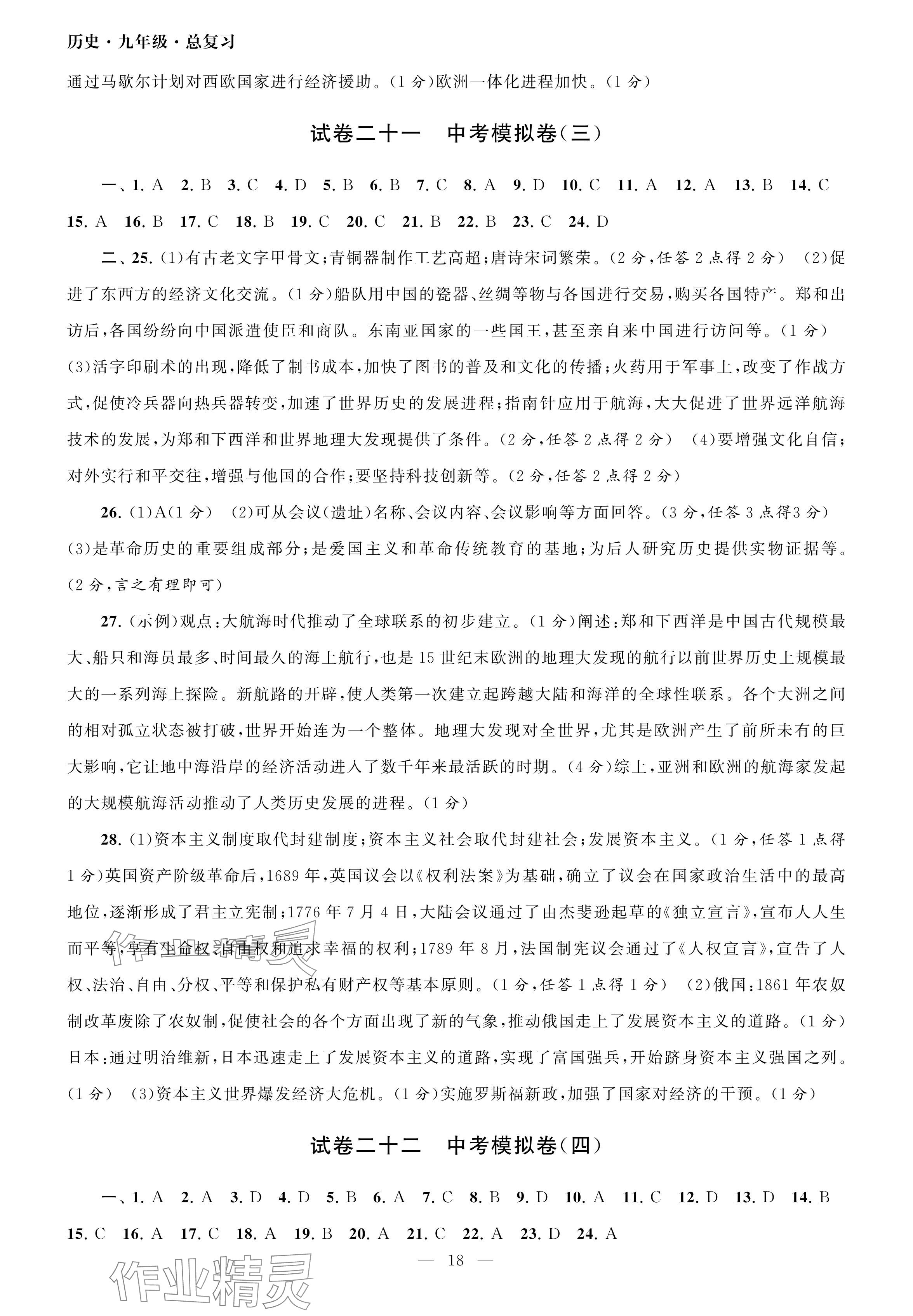 2024年智慧学习初中学科单元试卷九年级.总复习历史
