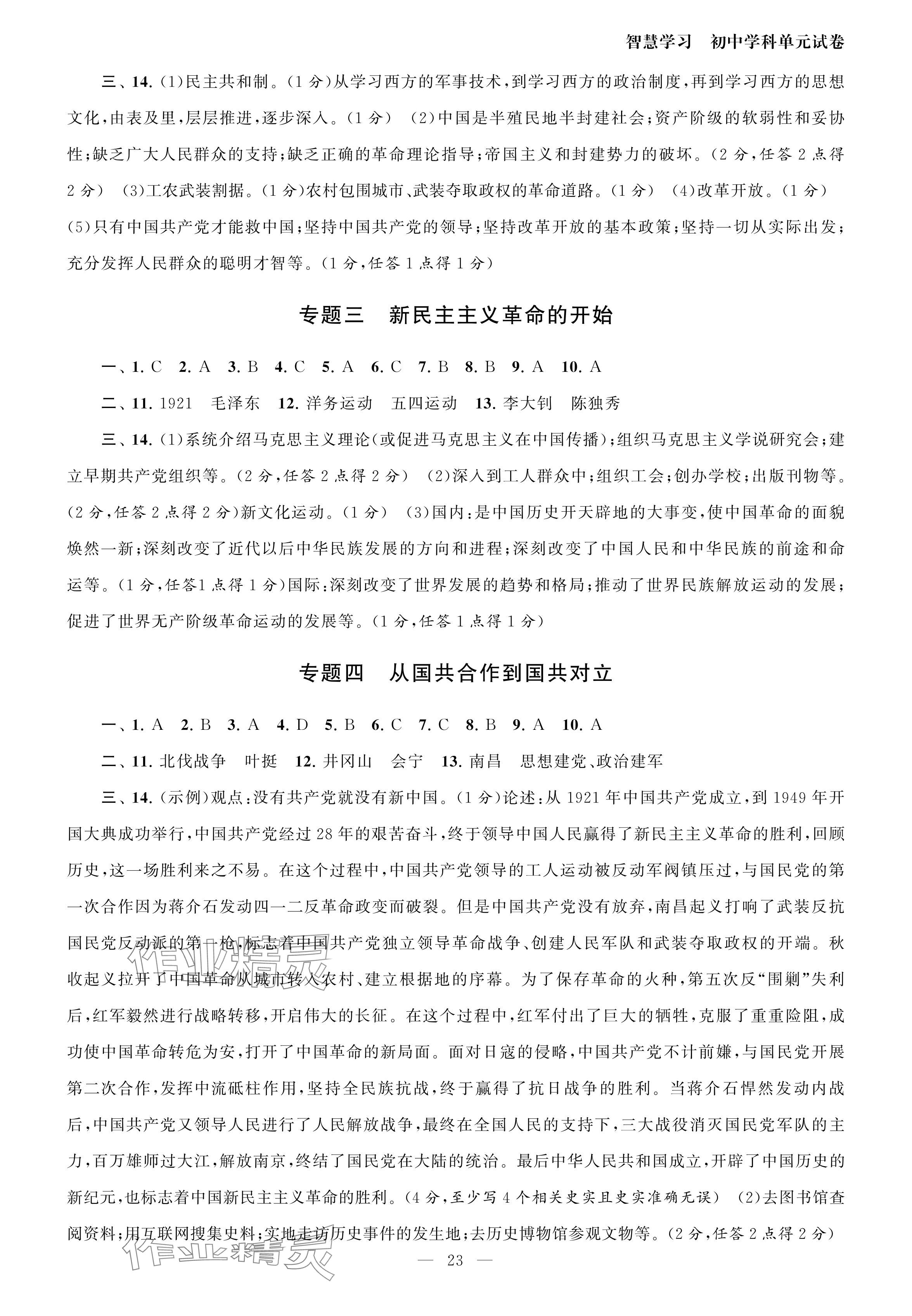 注:目前有些书本章节名称可能整理的还不是很完善,但都是按照顺序排列的,请同学们按照顺序仔细查找。练习册 2024年智慧学习初中学科单元试卷九年级.总复习历史 答案主要是用来给同学们做完题方便对答案用的,请勿直接抄袭。