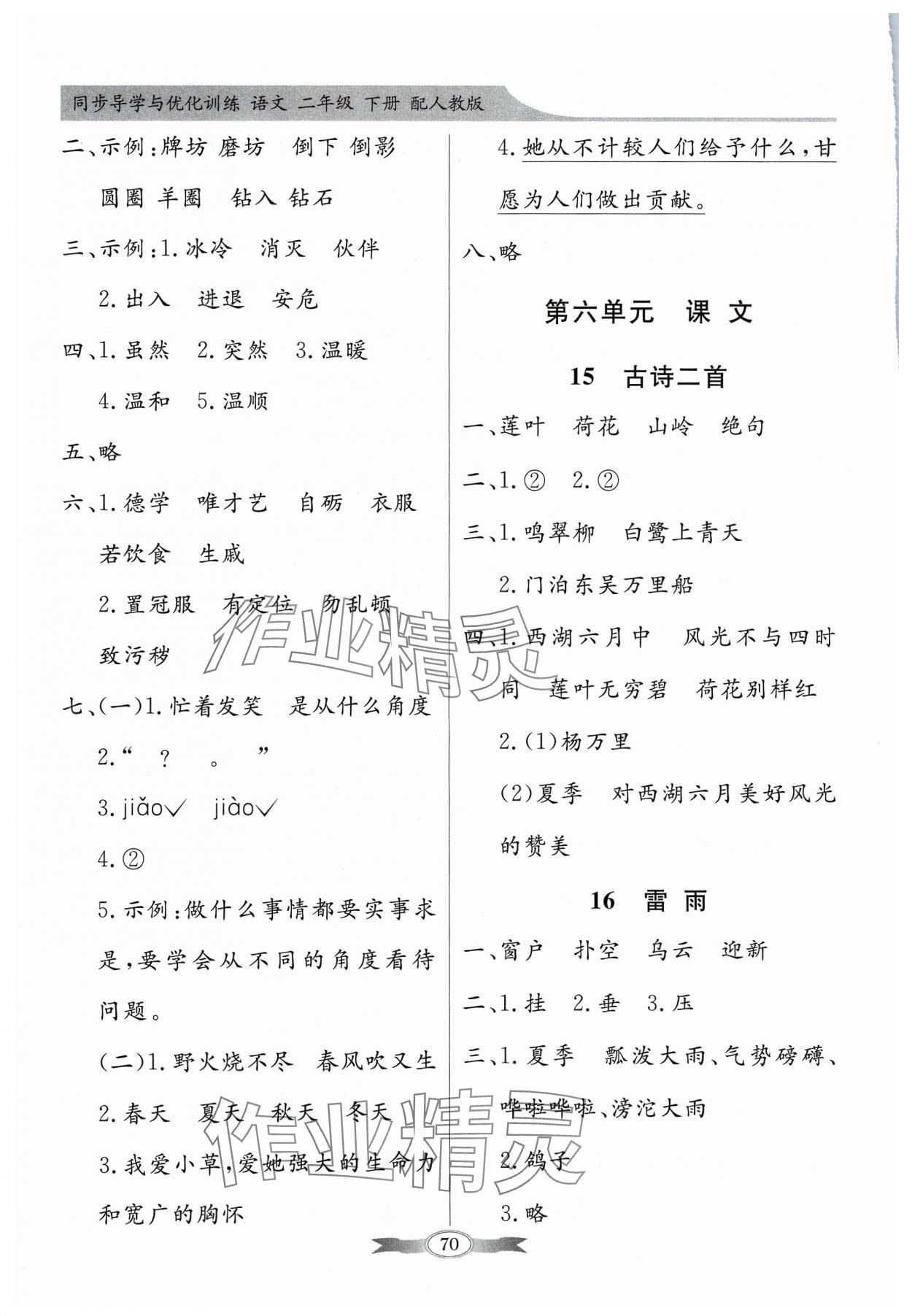 注:目前有些书本章节名称可能整理的还不是很完善,但都是按照顺序排列的,请同学们按照顺序仔细查找。练习册 2024年同步导学与优化训练二年级语文下册人教版 答案主要是用来给同学们做完题方便对答案用的,请勿直接抄袭。