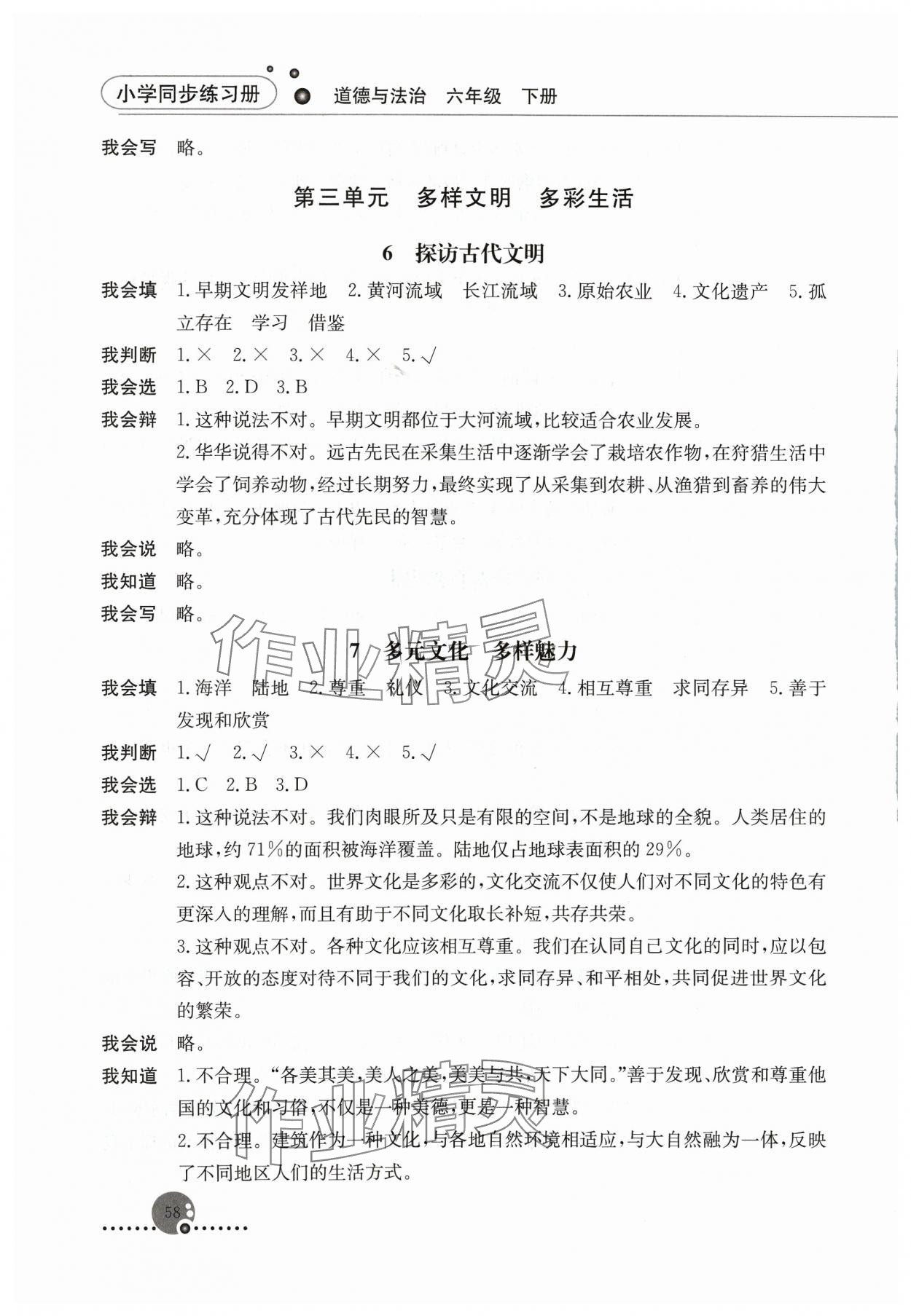 注:目前有些书本章节名称可能整理的还不是很完善,但都是按照顺序排列的,请同学们按照顺序仔细查找。练习册 2024年同步练习册人民教育出版社六年级道德与法治下册人教版 答案主要是用来给同学们做完题方便对答案用的,请勿直接抄袭。