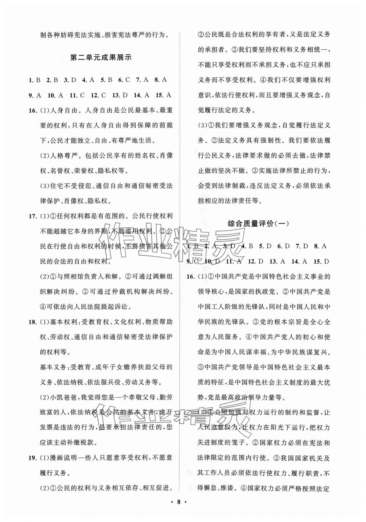 注:目前有些书本章节名称可能整理的还不是很完善,但都是按照顺序排列的,请同学们按照顺序仔细查找。练习册 2024年同步练习册分层卷八年级道德与法治下册人教版 答案主要是用来给同学们做完题方便对答案用的,请勿直接抄袭。