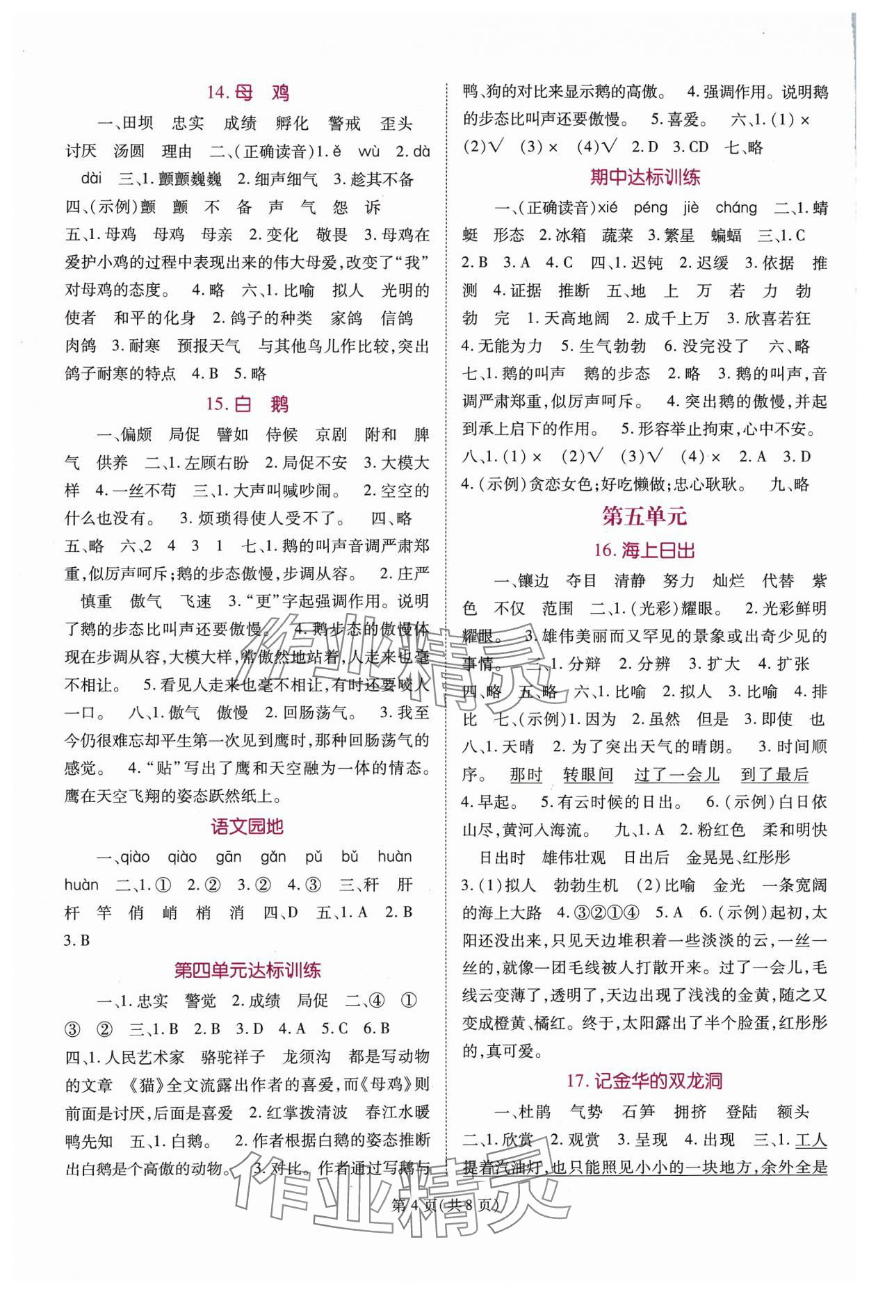 注:目前有些书本章节名称可能整理的还不是很完善,但都是按照顺序排列的,请同学们按照顺序仔细查找。练习册 2024年天下通课时作业本四年级语文下册人教版 答案主要是用来给同学们做完题方便对答案用的,请勿直接抄袭。
