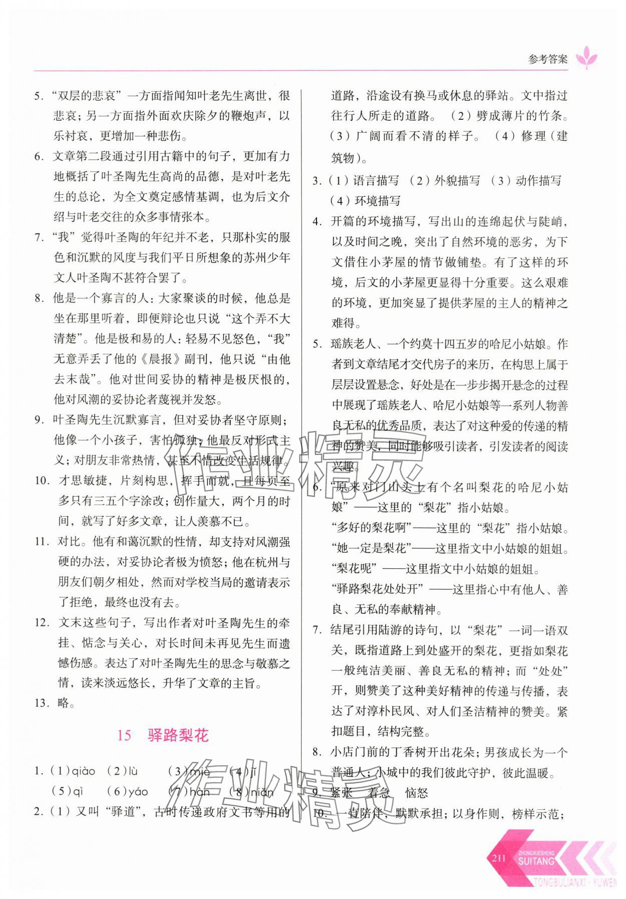 注:目前有些书本章节名称可能整理的还不是很完善,但都是按照顺序排列的,请同学们按照顺序仔细查找。练习册 2024年随堂同步练习七年级语文下册人教版 答案主要是用来给同学们做完题方便对答案用的,请勿直接抄袭。