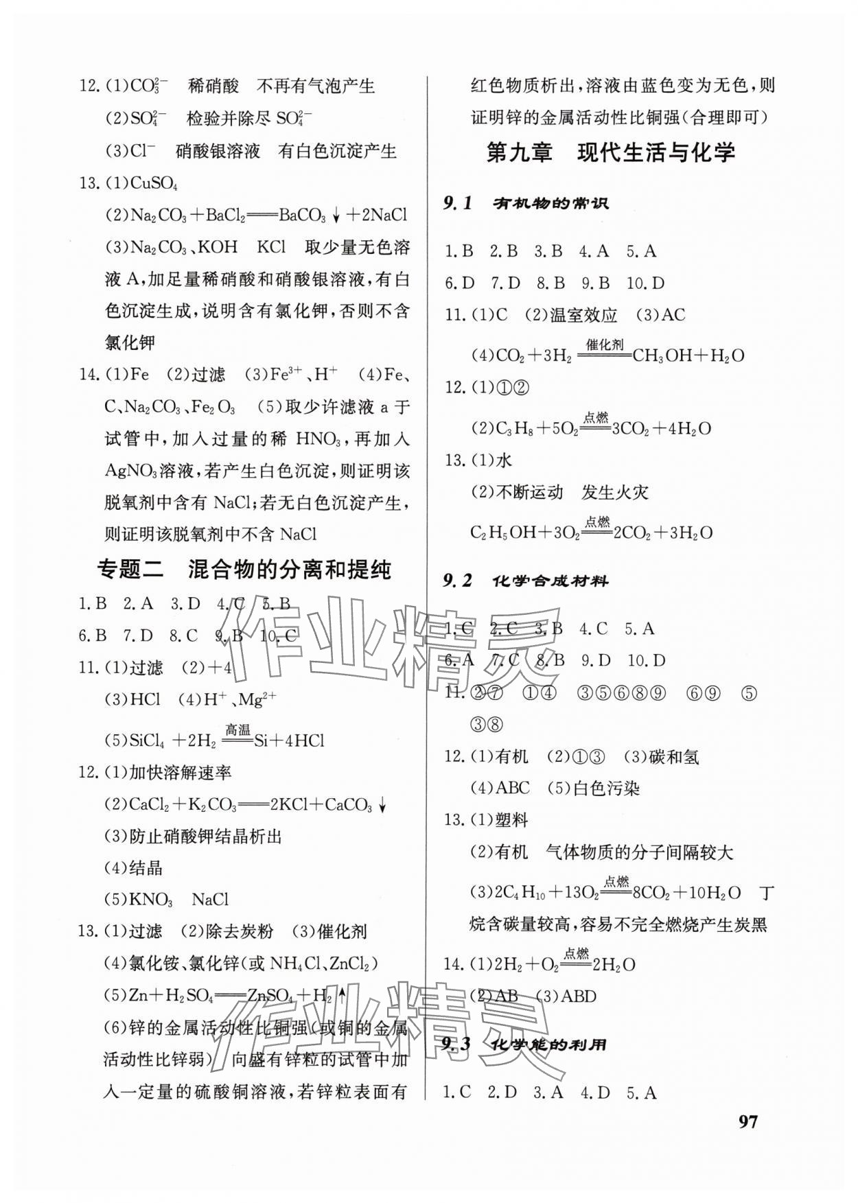 注:目前有些书本章节名称可能整理的还不是很完善,但都是按照顺序排列的,请同学们按照顺序仔细查找。练习册 2024年配套综合练习甘肃九年级化学下册科粤版 答案主要是用来给同学们做完题方便对答案用的,请勿直接抄袭。