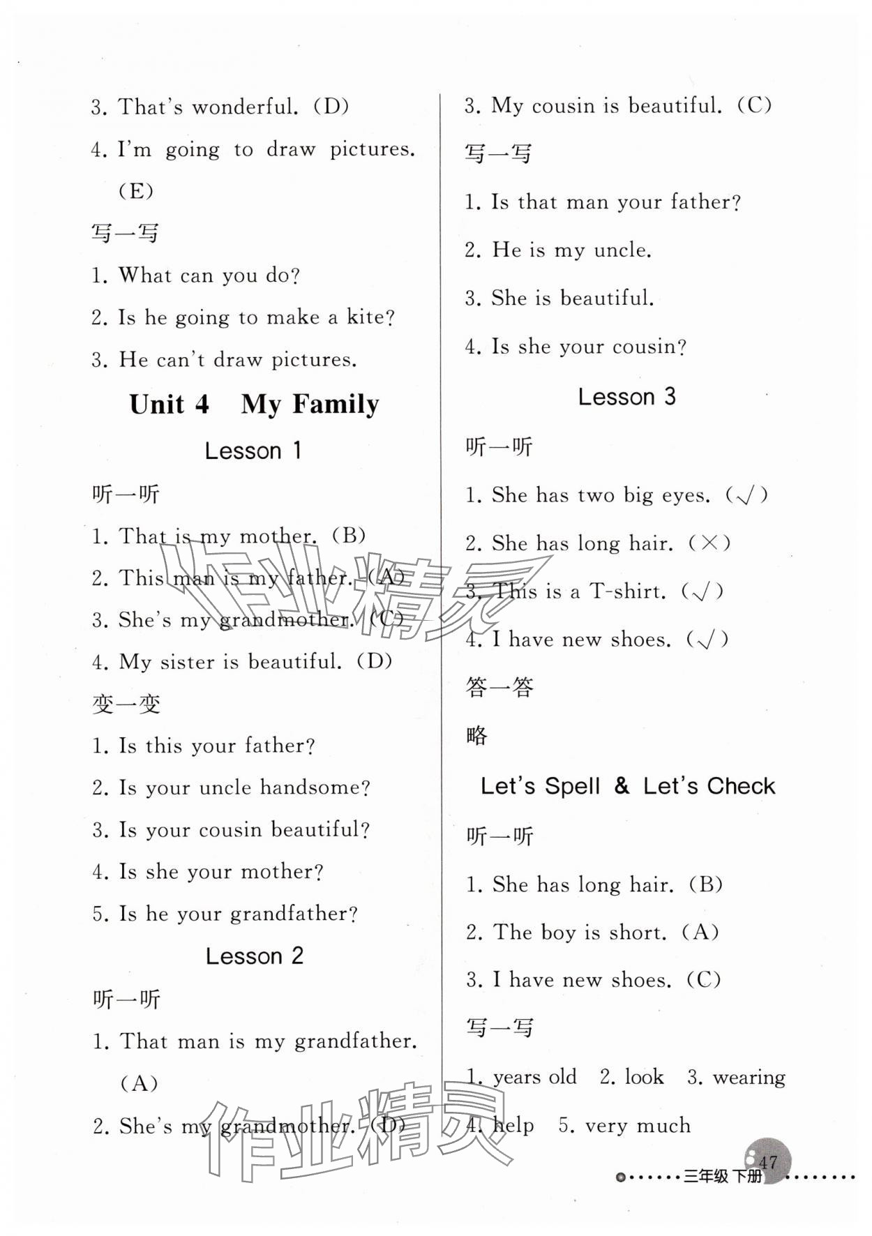 注:目前有些书本章节名称可能整理的还不是很完善,但都是按照顺序排列的,请同学们按照顺序仔细查找。练习册 2024年配套练习与检测三年级英语下册人教版1年级起 答案主要是用来给同学们做完题方便对答案用的,请勿直接抄袭。