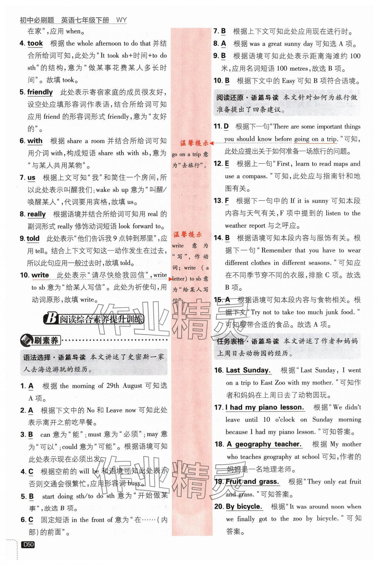 注:目前有些书本章节名称可能整理的还不是很完善,但都是按照顺序排列的,请同学们按照顺序仔细查找。练习册 2024年初中必刷题七年级英语下册外研版 答案主要是用来给同学们做完题方便对答案用的,请勿直接抄袭。