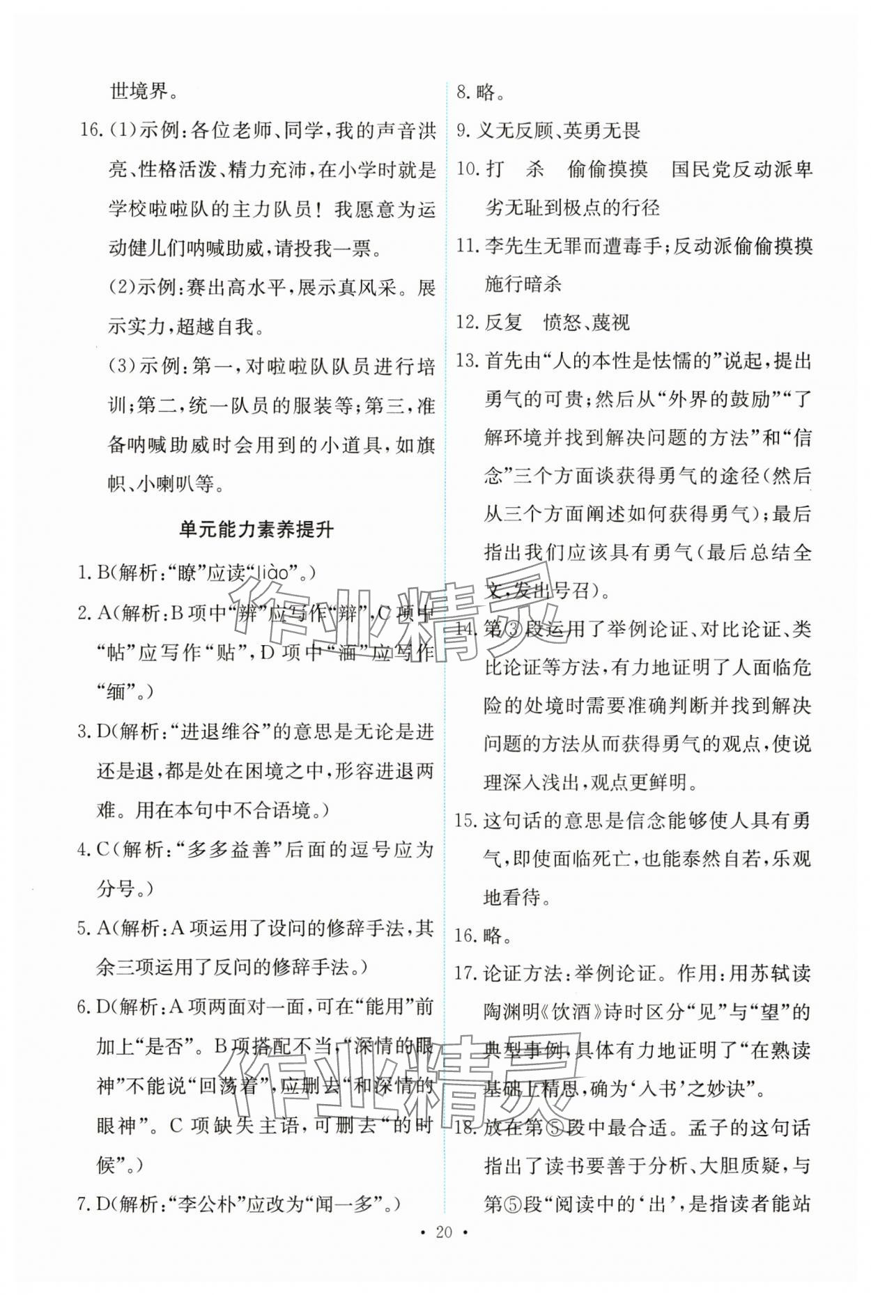 注:目前有些书本章节名称可能整理的还不是很完善,但都是按照顺序排列的,请同学们按照顺序仔细查找。练习册 2024年能力培养与测试八年级语文下册人教版 答案主要是用来给同学们做完题方便对答案用的,请勿直接抄袭。