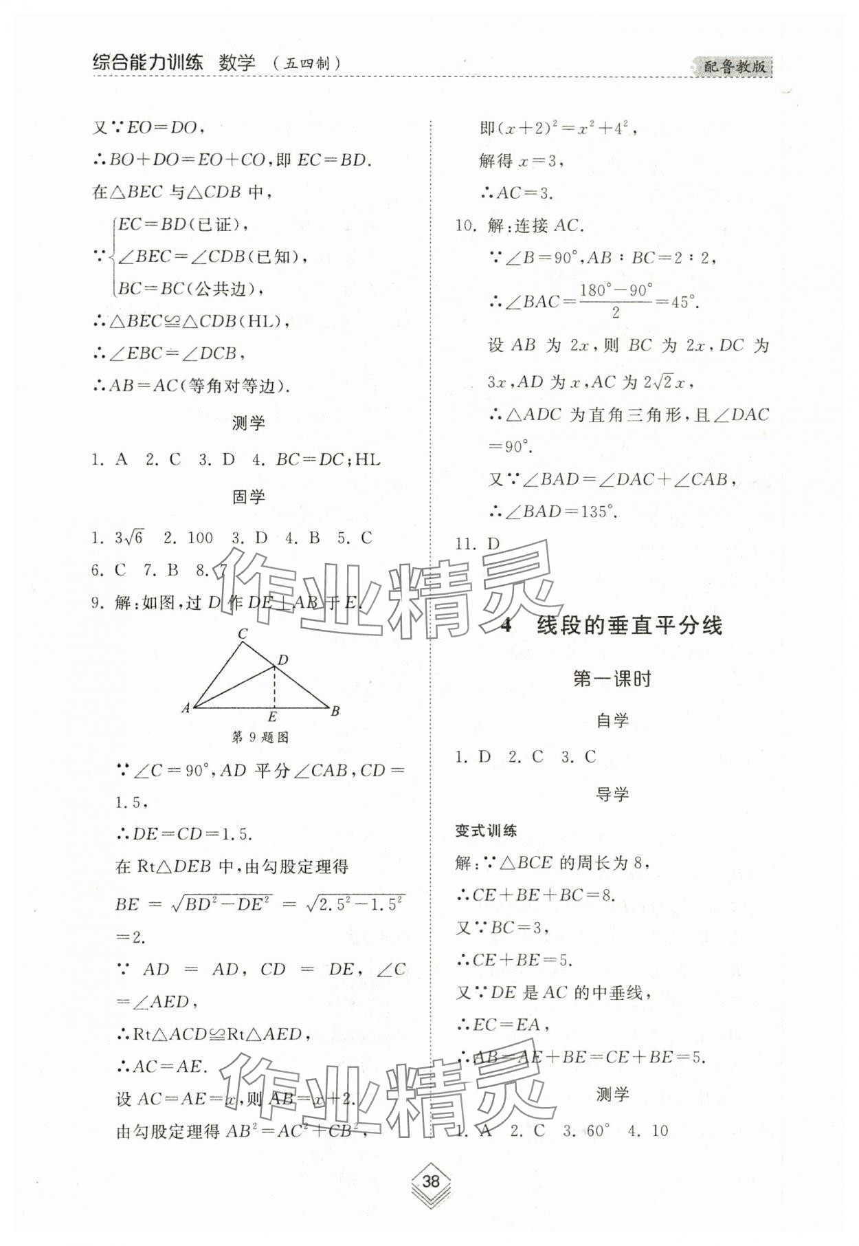 注:目前有些书本章节名称可能整理的还不是很完善,但都是按照顺序排列的,请同学们按照顺序仔细查找。练习册 2024年综合能力训练七年级数学下册鲁教版54制 答案主要是用来给同学们做完题方便对答案用的,请勿直接抄袭。