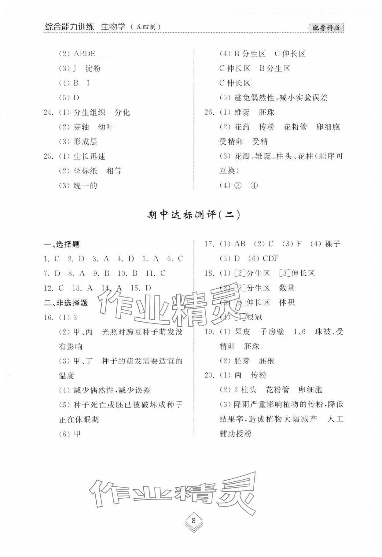 《2024年综合能力训练六年级生物下册鲁科版54制》