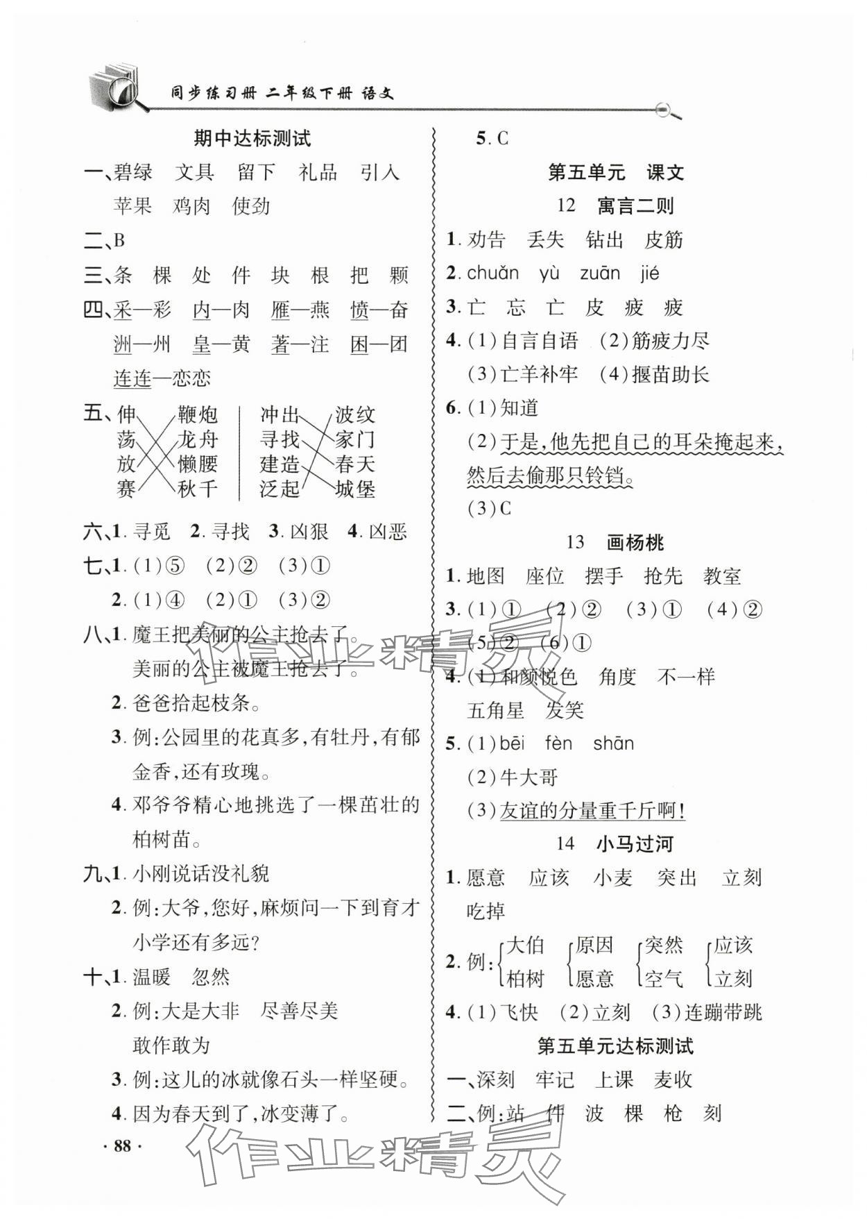 注:目前有些书本章节名称可能整理的还不是很完善,但都是按照顺序排列的,请同学们按照顺序仔细查找。练习册 2024年同步练习册山东画报出版社二年级语文下册人教版 答案主要是用来给同学们做完题方便对答案用的,请勿直接抄袭。