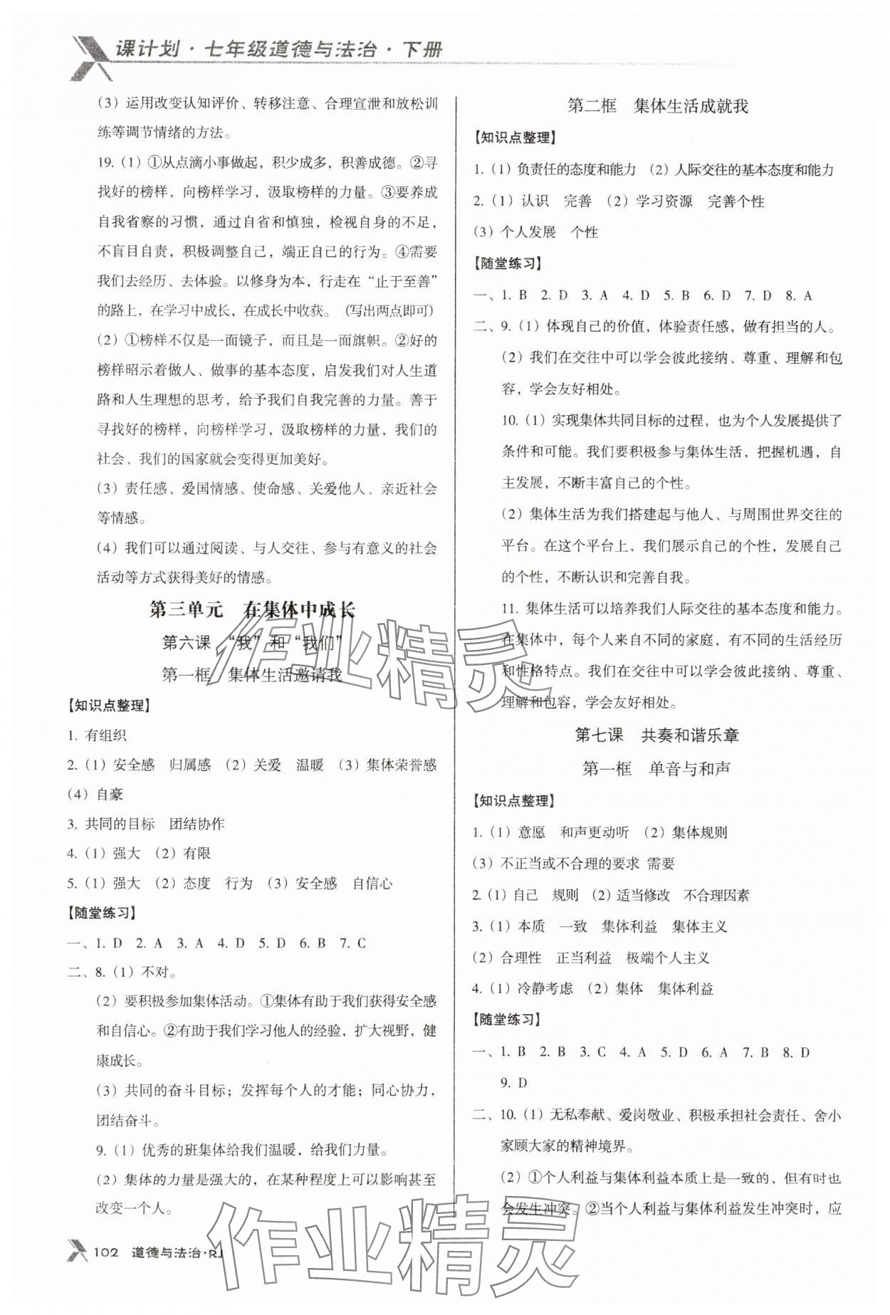 《2024年全优点练课计划七年级道德与法治下册人教版》