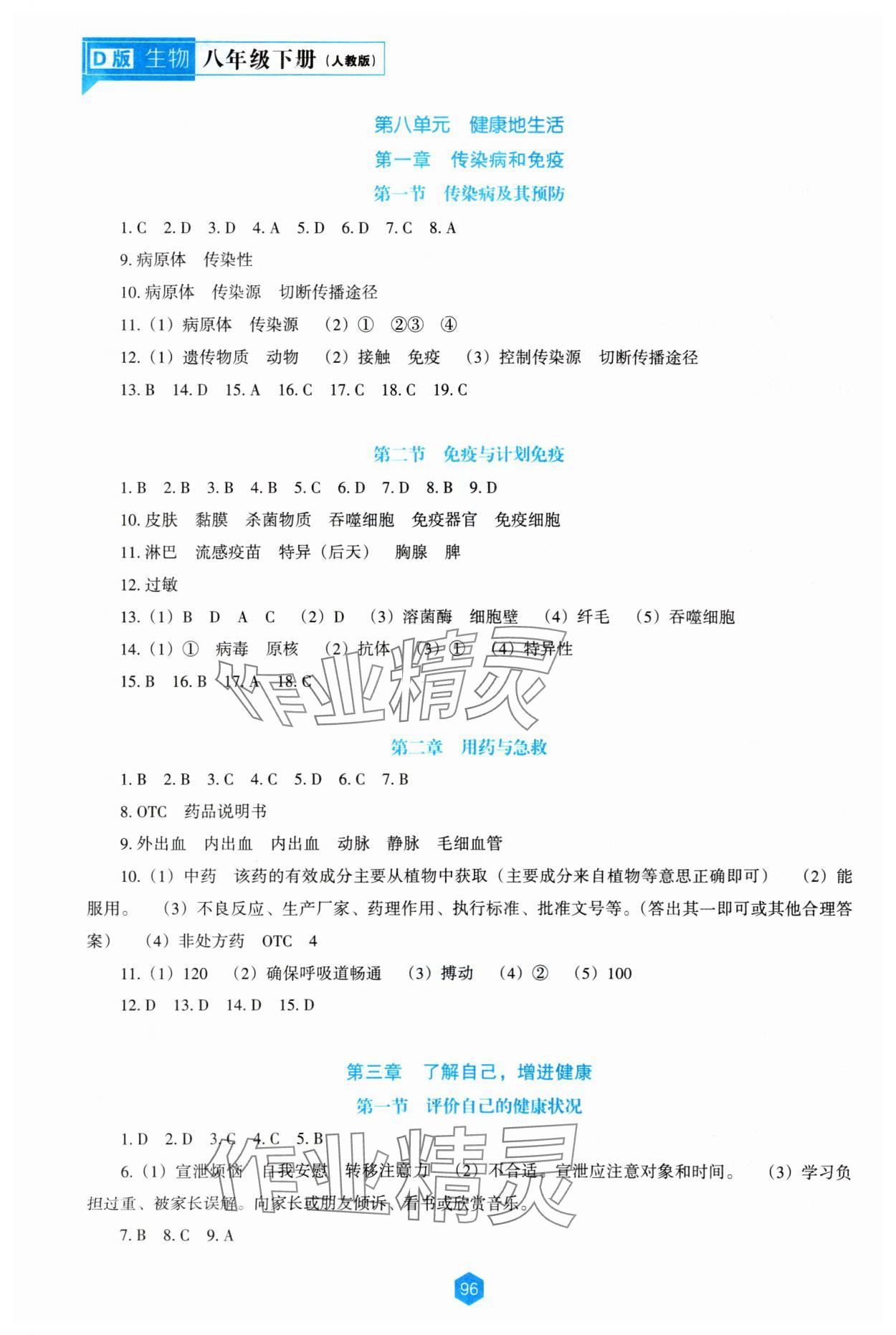 注:目前有些书本章节名称可能整理的还不是很完善,但都是按照顺序排列的,请同学们按照顺序仔细查找。练习册 2024年新课程能力培养八年级生物下册人教版D版 答案主要是用来给同学们做完题方便对答案用的,请勿直接抄袭。