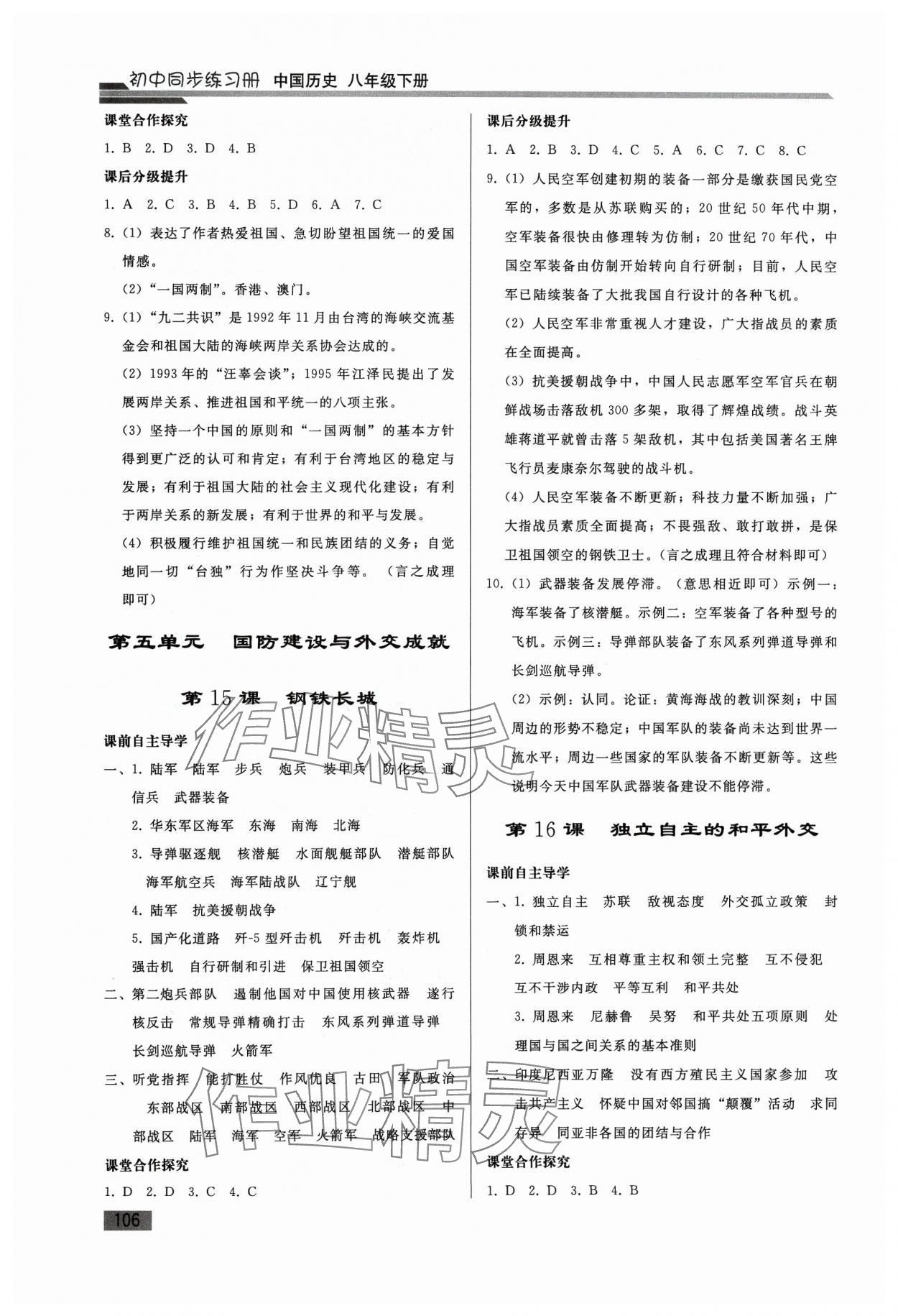 注:目前有些书本章节名称可能整理的还不是很完善,但都是按照顺序排列的,请同学们按照顺序仔细查找。练习册 2024年同步练习册人民教育出版社八年级历史下册人教版山东专版 答案主要是用来给同学们做完题方便对答案用的,请勿直接抄袭。