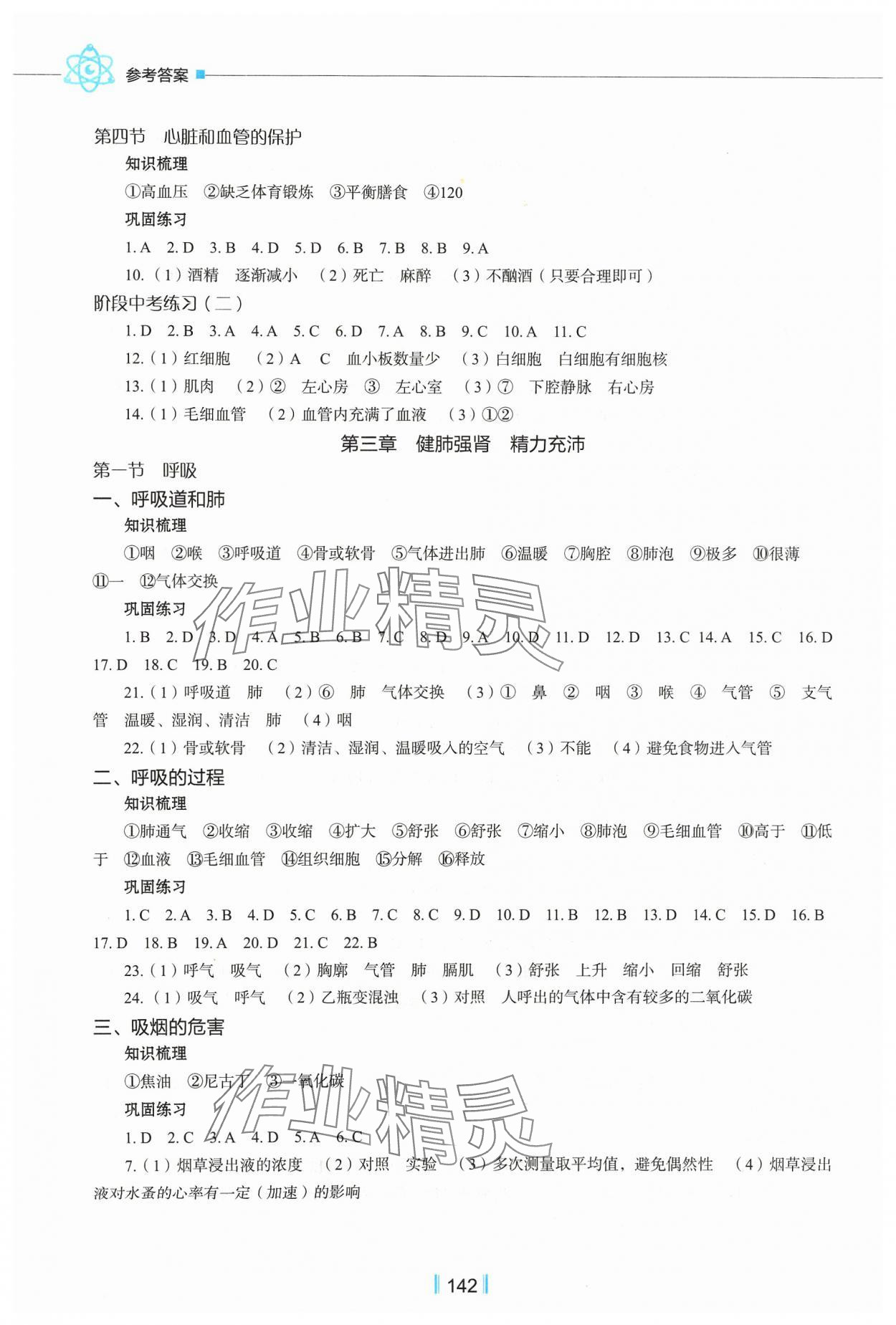 注:目前有些书本章节名称可能整理的还不是很完善,但都是按照顺序排列的,请同学们按照顺序仔细查找。练习册 2024年新教材同步练七年级生物下册冀教版重庆专版 答案主要是用来给同学们做完题方便对答案用的,请勿直接抄袭。