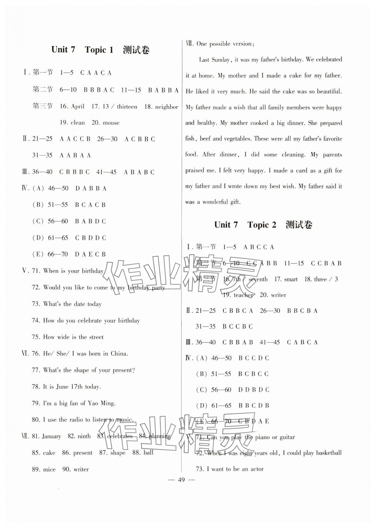 参考答案第49页