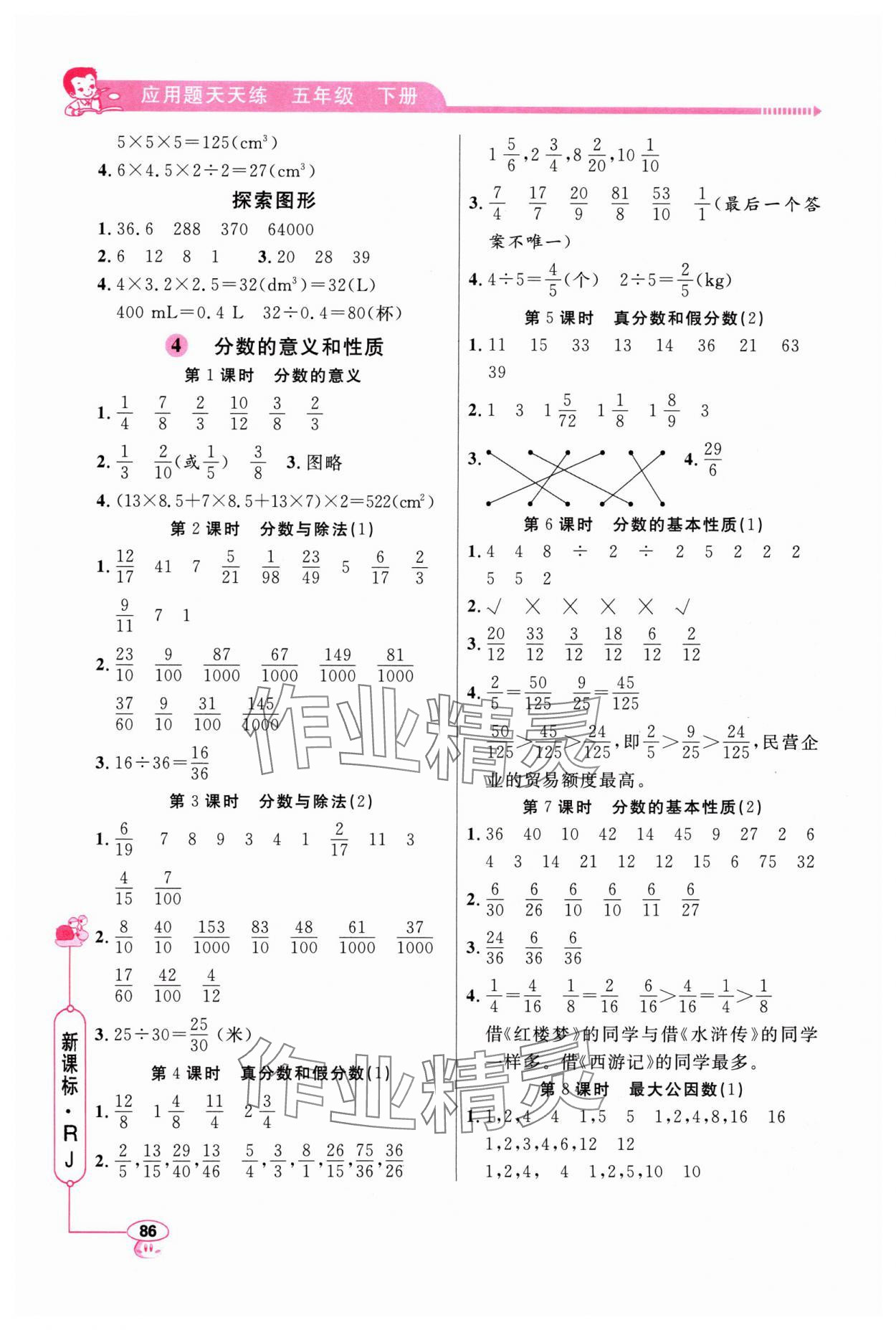 注:目前有些书本章节名称可能整理的还不是很完善,但都是按照顺序排列的,请同学们按照顺序仔细查找。练习册 2024年小学数学应用题天天练五年级下册人教版 答案主要是用来给同学们做完题方便对答案用的,请勿直接抄袭。