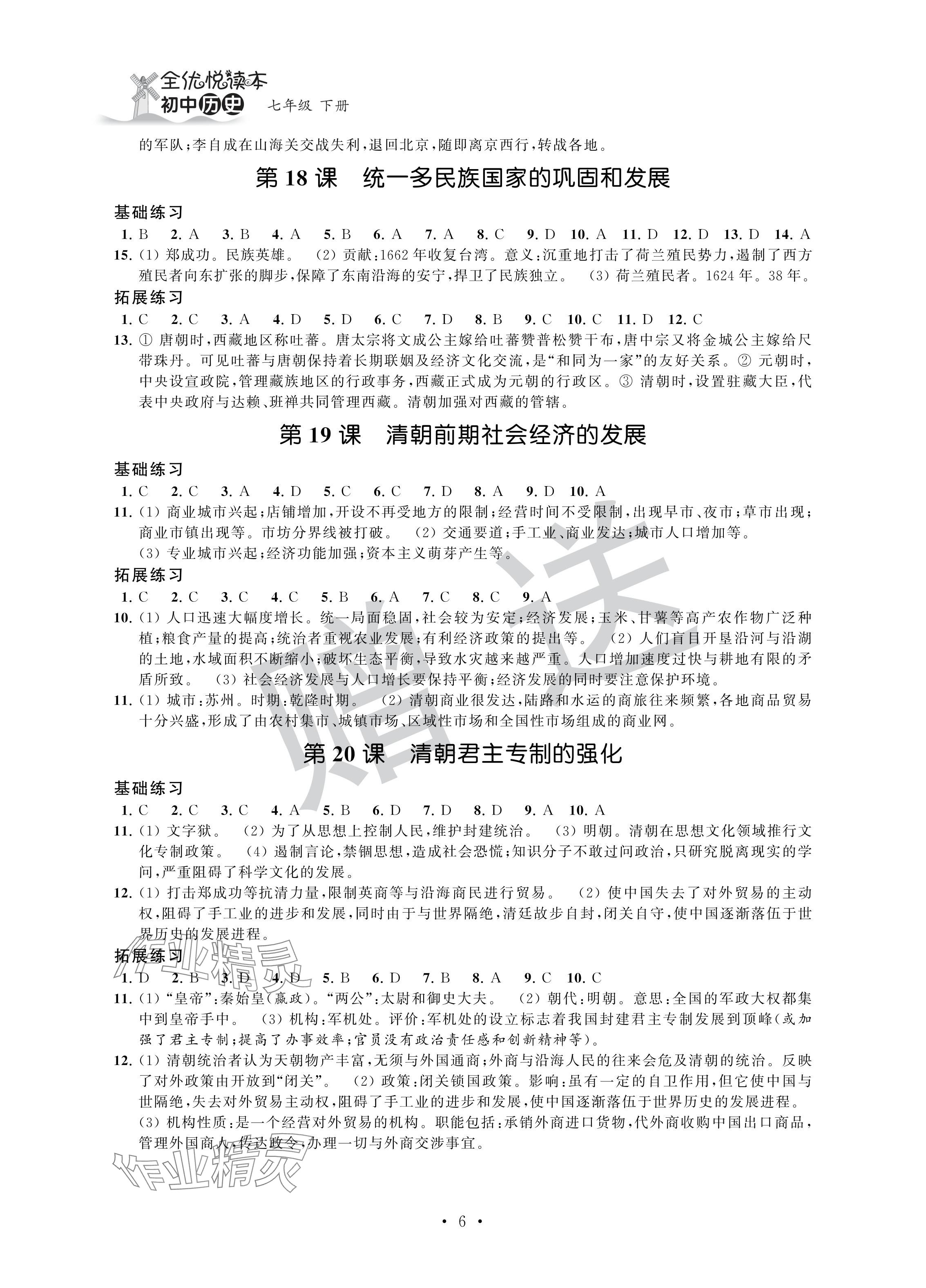 注:目前有些书本章节名称可能整理的还不是很完善,但都是按照顺序排列的,请同学们按照顺序仔细查找。练习册 2024年全优悦读本七年级历史下册人教版 答案主要是用来给同学们做完题方便对答案用的,请勿直接抄袭。