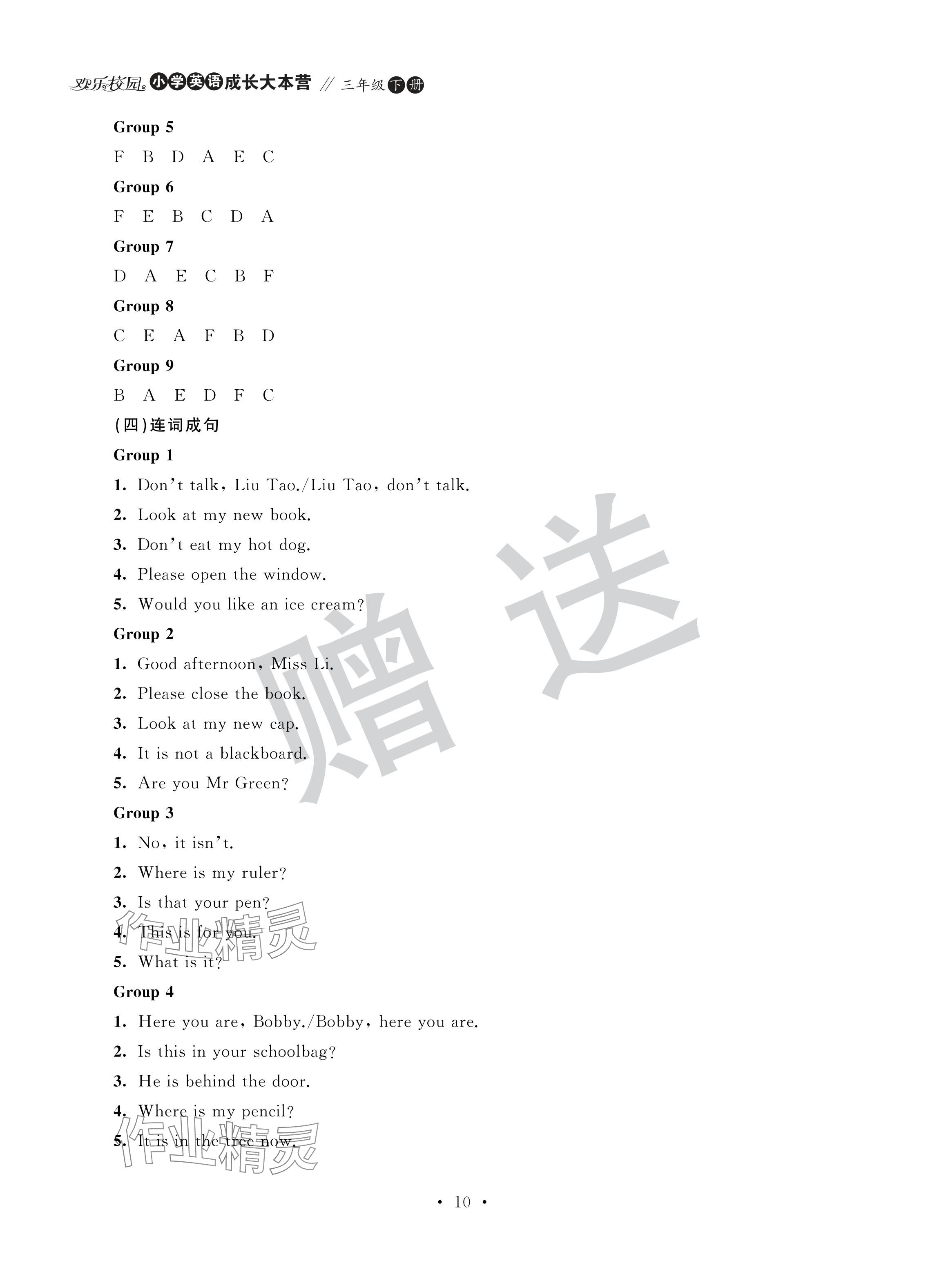 注:目前有些书本章节名称可能整理的还不是很完善,但都是按照顺序排列的,请同学们按照顺序仔细查找。练习册 2024年欢乐校园成长大本营三年级英语下册译林版 答案主要是用来给同学们做完题方便对答案用的,请勿直接抄袭。