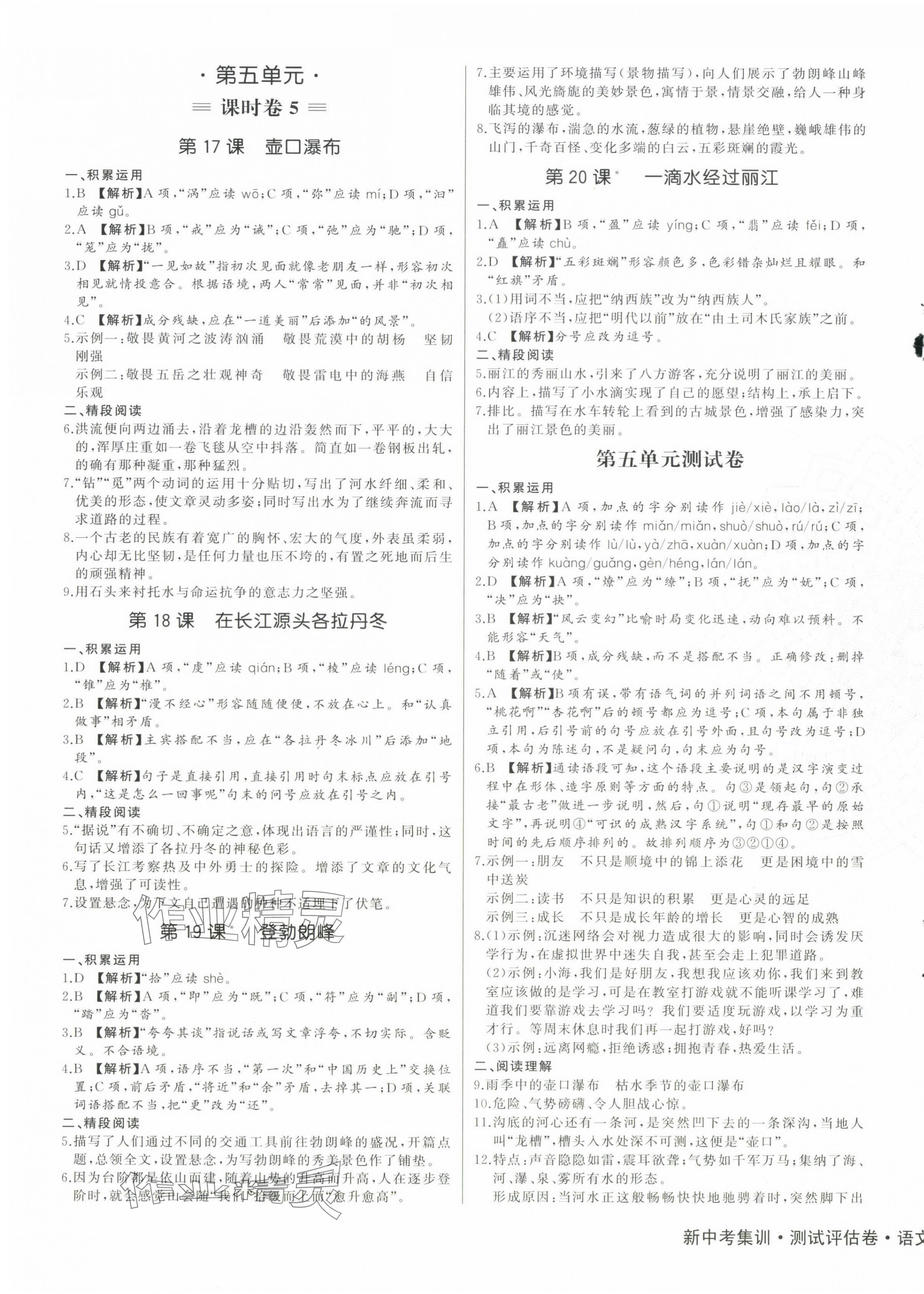 注:目前有些书本章节名称可能整理的还不是很完善,但都是按照顺序排列的,请同学们按照顺序仔细查找。练习册 2024年新中考集训测试评估卷八年级语文下册人教版 答案主要是用来给同学们做完题方便对答案用的,请勿直接抄袭。