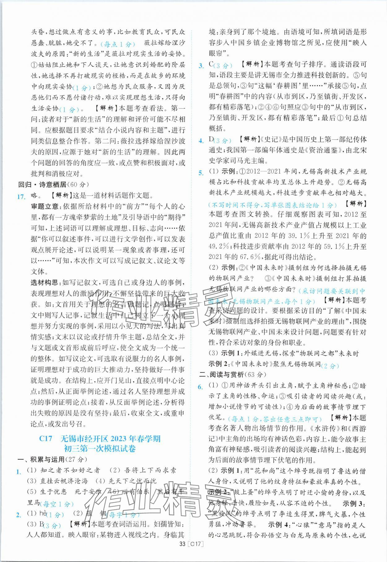 注:目前有些书本章节名称可能整理的还不是很完善,但都是按照顺序排列的,请同学们按照顺序仔细查找。练习册 2024年江苏13大市名卷优选38套中考语文 答案主要是用来给同学们做完题方便对答案用的,请勿直接抄袭。