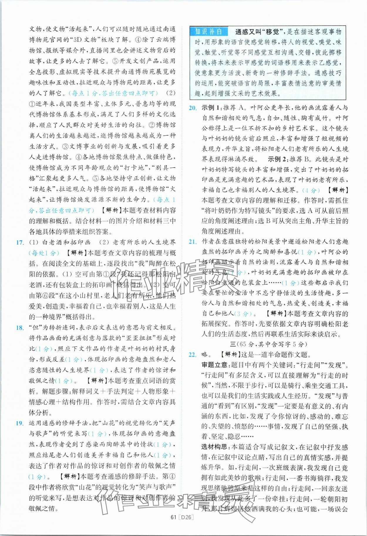 注:目前有些书本章节名称可能整理的还不是很完善,但都是按照顺序排列的,请同学们按照顺序仔细查找。练习册 2024年江苏13大市名卷优选38套中考语文 答案主要是用来给同学们做完题方便对答案用的,请勿直接抄袭。