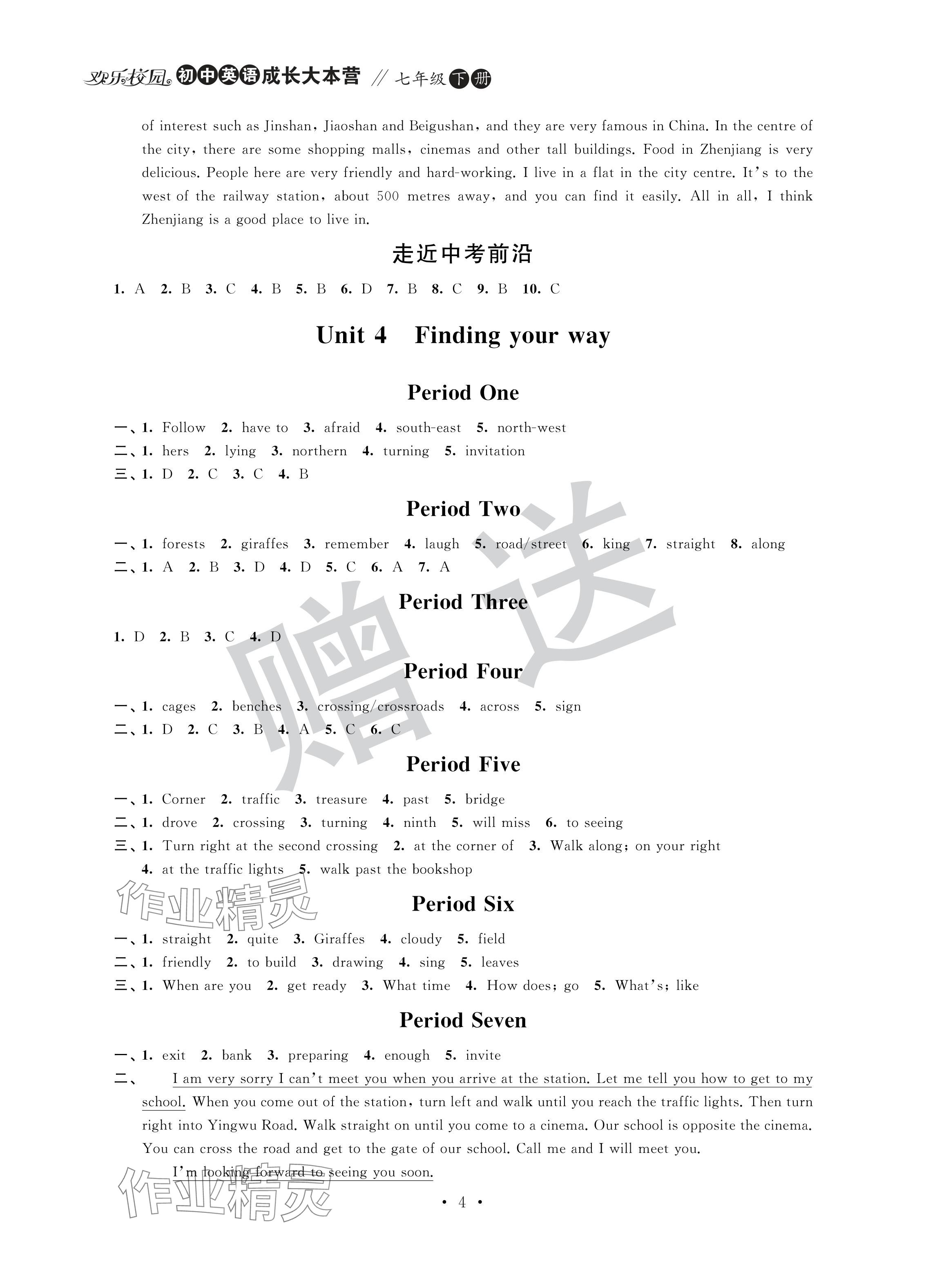 注:目前有些书本章节名称可能整理的还不是很完善,但都是按照顺序排列的,请同学们按照顺序仔细查找。练习册 2024年欢乐校园智慧金典成长大本营七年级英语下册译林版 答案主要是用来给同学们做完题方便对答案用的,请勿直接抄袭。