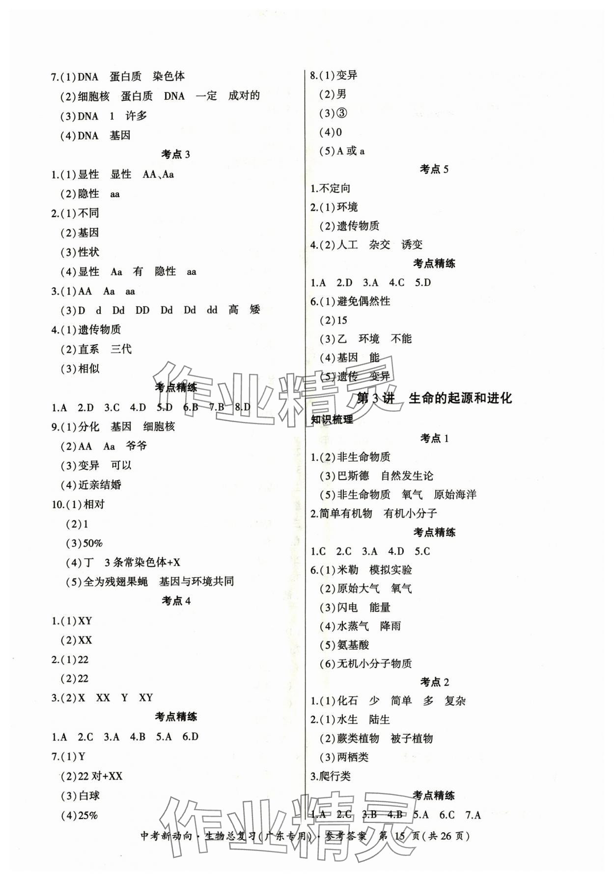 注:目前有些书本章节名称可能整理的还不是很完善,但都是按照顺序排列的,请同学们按照顺序仔细查找。练习册 2024年中考新动向生物广东专版 答案主要是用来给同学们做完题方便对答案用的,请勿直接抄袭。