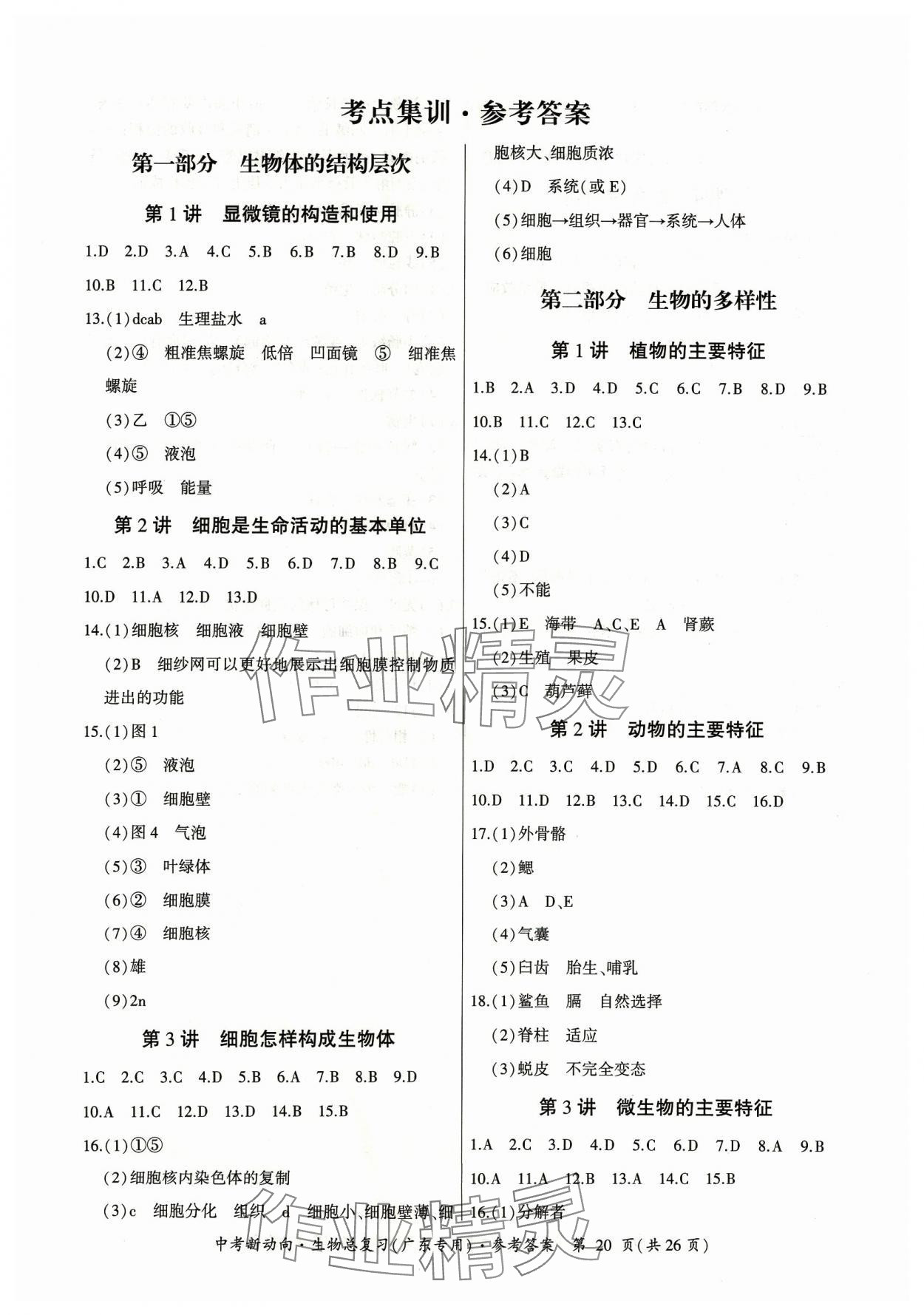 注:目前有些书本章节名称可能整理的还不是很完善,但都是按照顺序排列的,请同学们按照顺序仔细查找。练习册 2024年中考新动向生物广东专版 答案主要是用来给同学们做完题方便对答案用的,请勿直接抄袭。