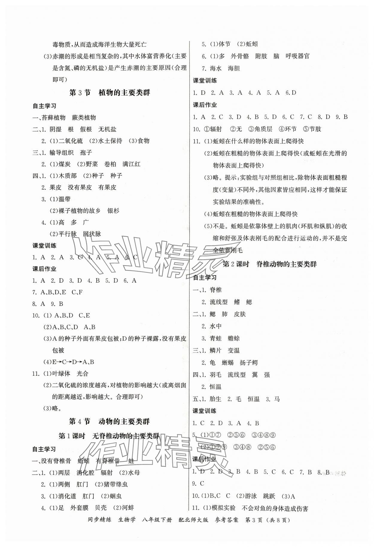 注:目前有些书本章节名称可能整理的还不是很完善,但都是按照顺序排列的,请同学们按照顺序仔细查找。练习册 2024年同步精练八年级生物下册北师大版 答案主要是用来给同学们做完题方便对答案用的,请勿直接抄袭。