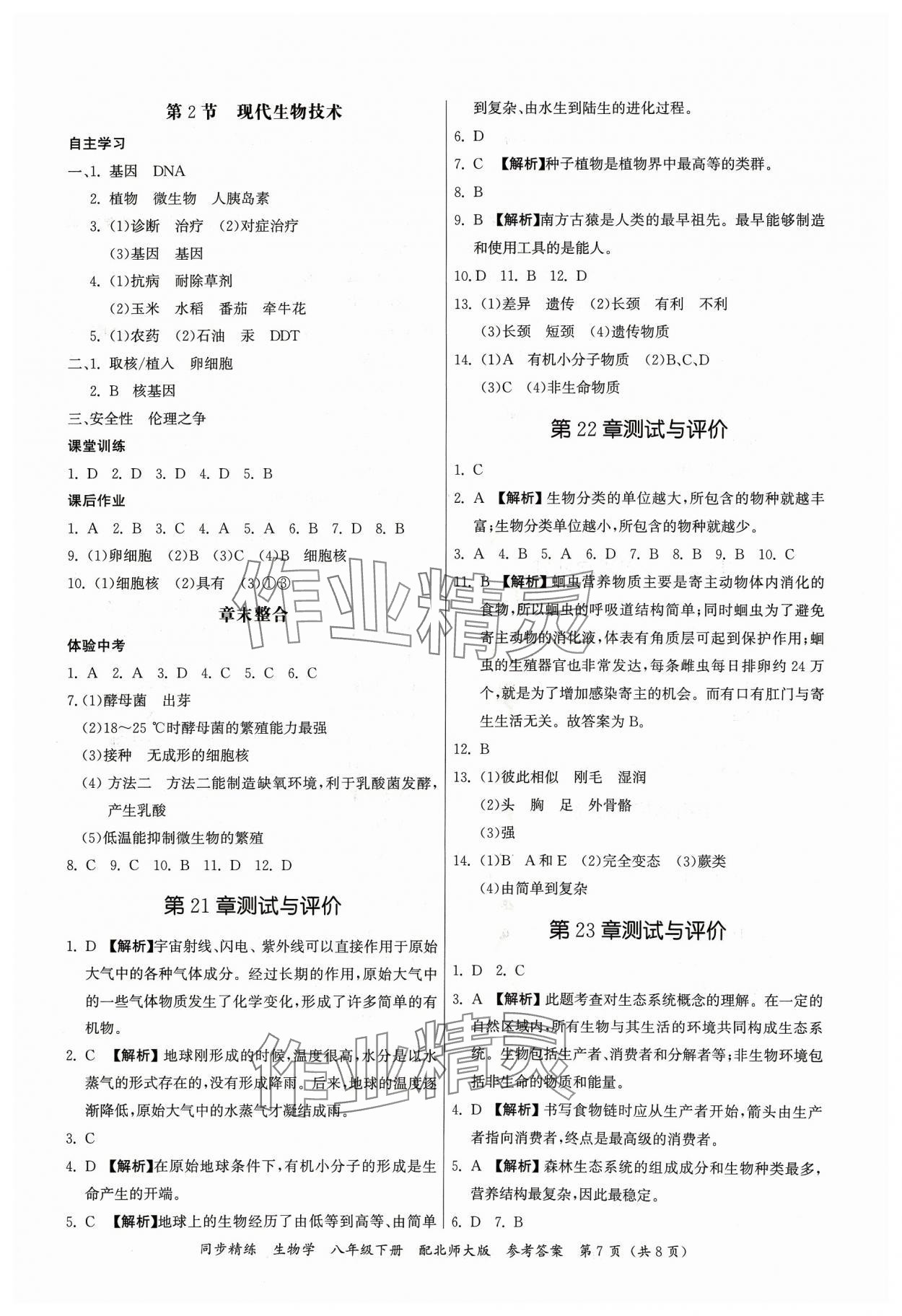 注:目前有些书本章节名称可能整理的还不是很完善,但都是按照顺序排列的,请同学们按照顺序仔细查找。练习册 2024年同步精练八年级生物下册北师大版 答案主要是用来给同学们做完题方便对答案用的,请勿直接抄袭。