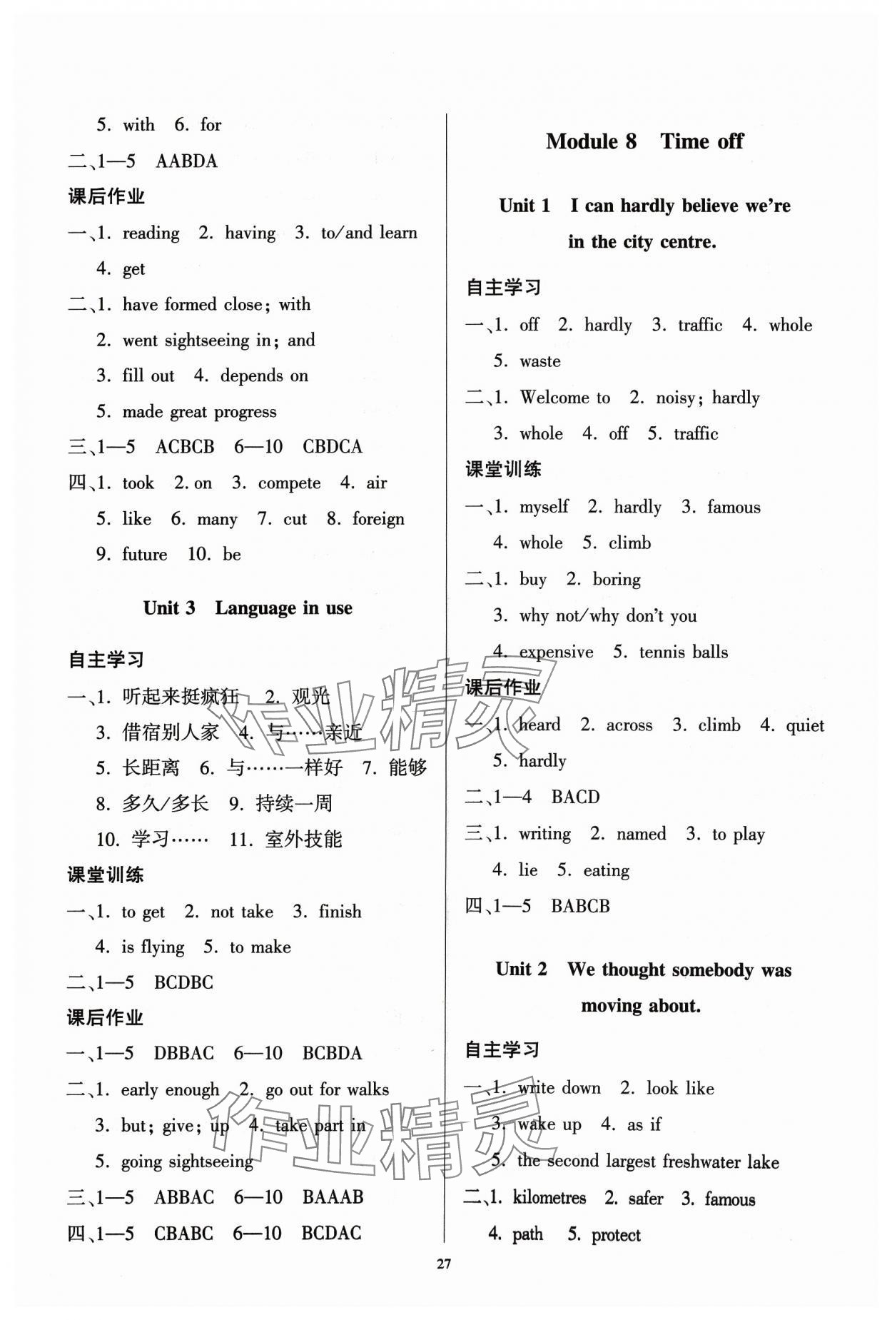注:目前有些书本章节名称可能整理的还不是很完善,但都是按照顺序排列的,请同学们按照顺序仔细查找。练习册 2024年同步精练广东人民出版社八年级英语下册外研版 答案主要是用来给同学们做完题方便对答案用的,请勿直接抄袭。