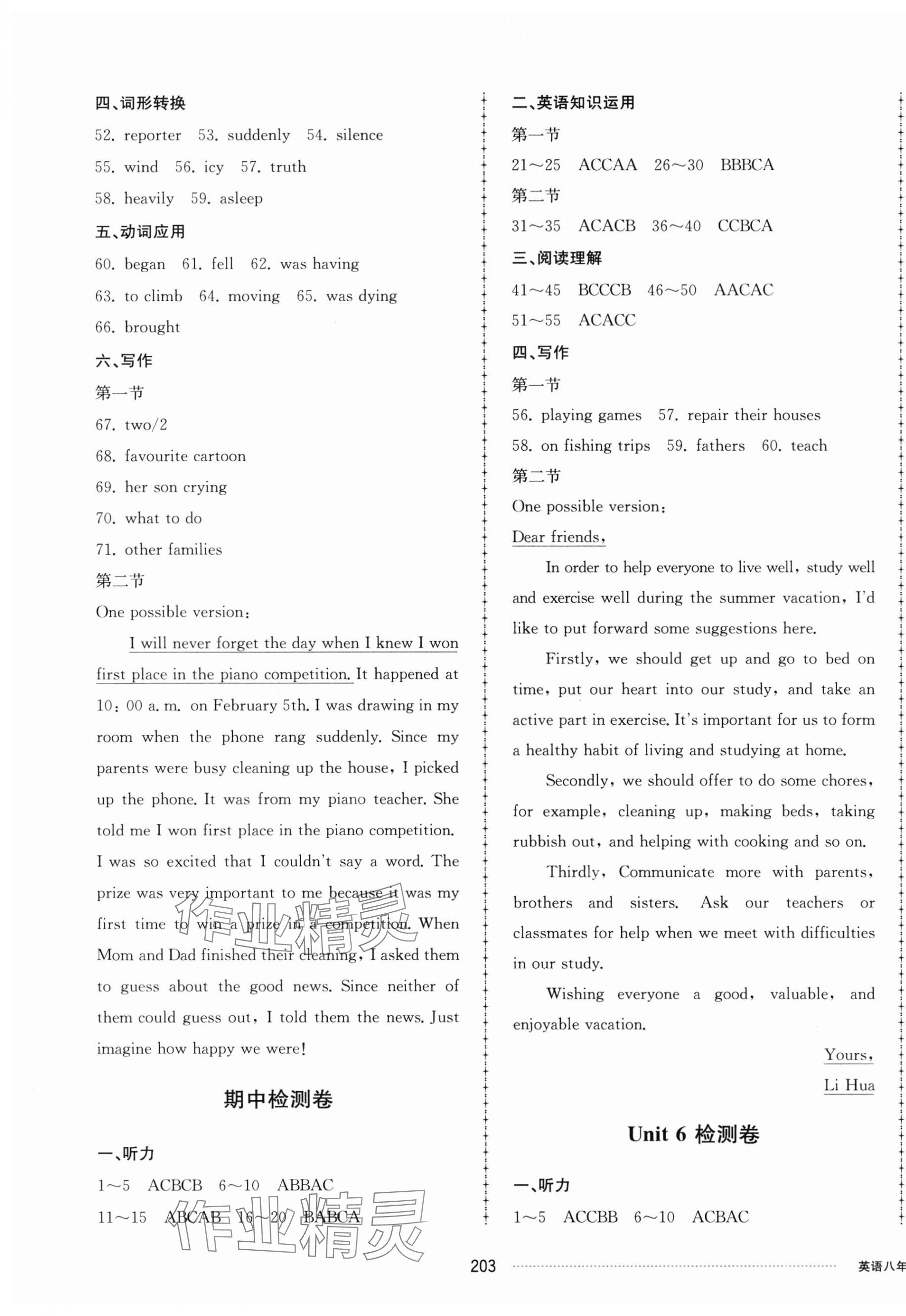 注:目前有些书本章节名称可能整理的还不是很完善,但都是按照顺序排列的,请同学们按照顺序仔细查找。练习册 2024年同步练习册配套单元检测卷八年级英语下册人教版 答案主要是用来给同学们做完题方便对答案用的,请勿直接抄袭。