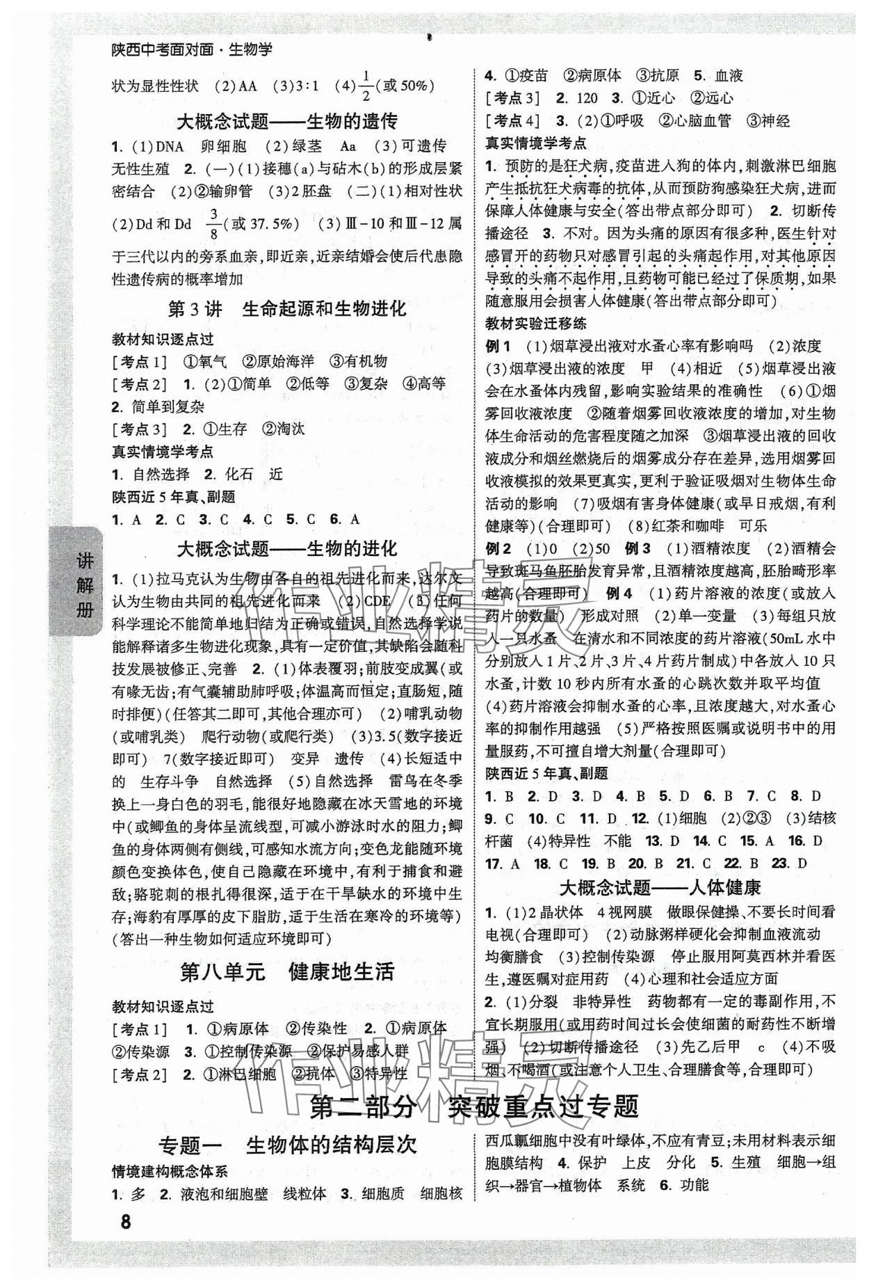 注:目前有些书本章节名称可能整理的还不是很完善,但都是按照顺序排列的,请同学们按照顺序仔细查找。练习册 2024年中考面对面生物中考人教版陕西专版 答案主要是用来给同学们做完题方便对答案用的,请勿直接抄袭。