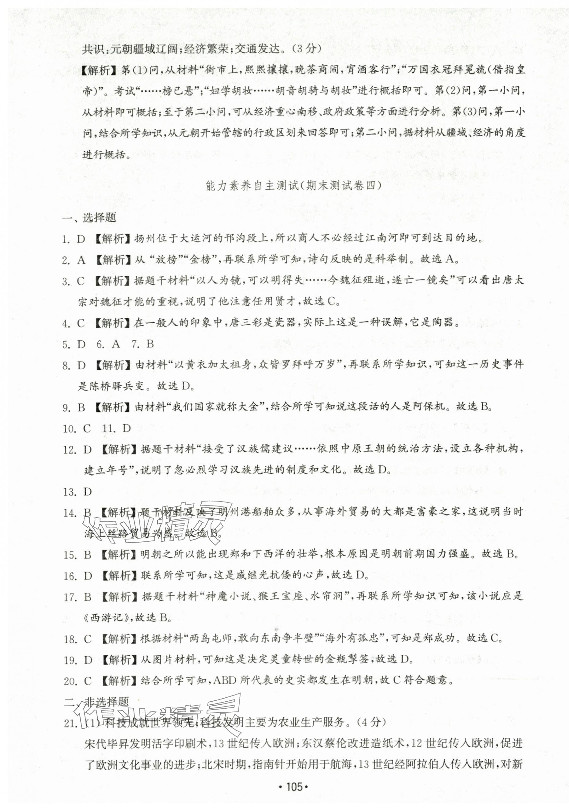 注:目前有些书本章节名称可能整理的还不是很完善,但都是按照顺序排列的,请同学们按照顺序仔细查找。练习册 2024年初中基础训练山东教育出版社七年级历史下册人教版 答案主要是用来给同学们做完题方便对答案用的,请勿直接抄袭。