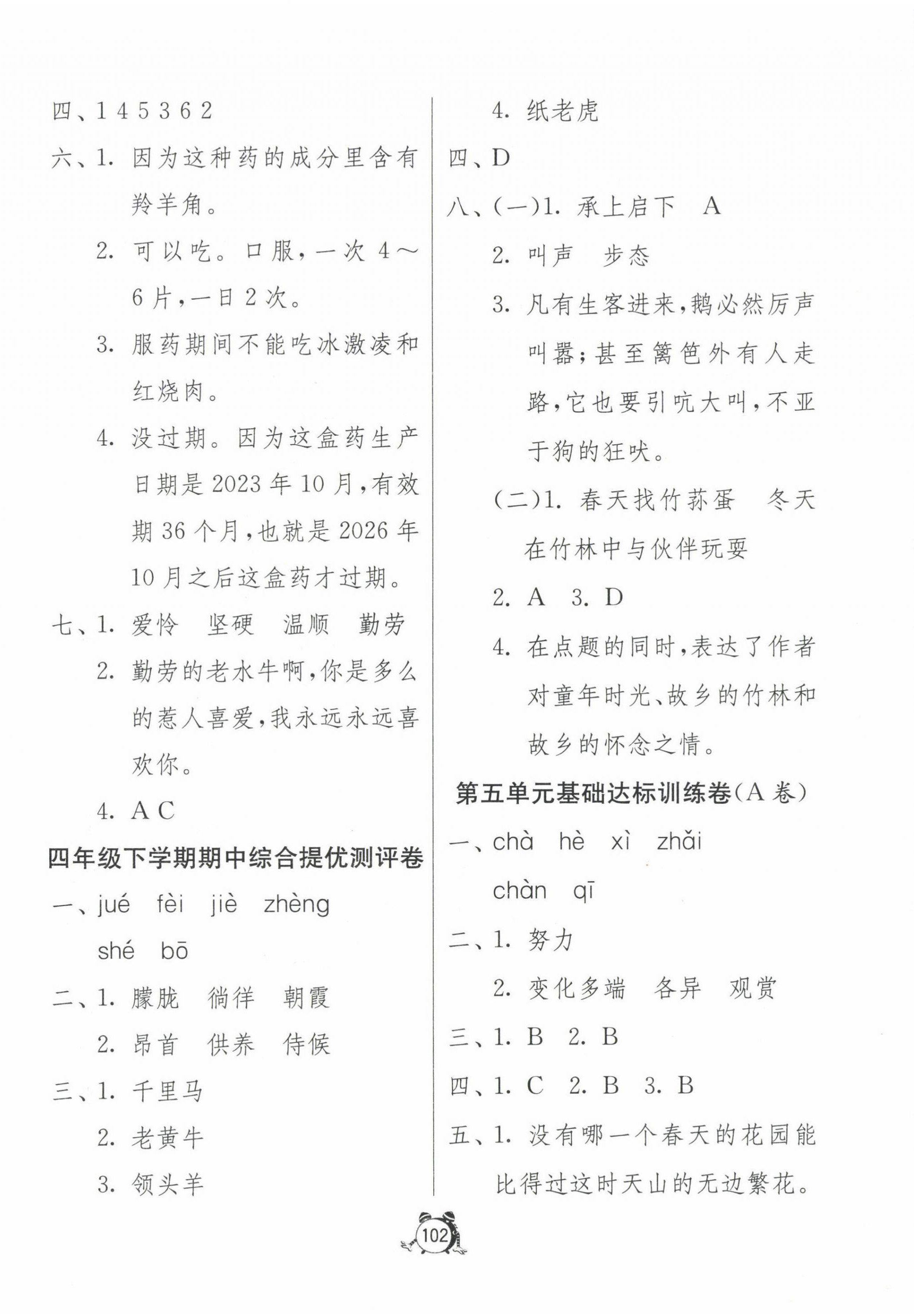 注:目前有些书本章节名称可能整理的还不是很完善,但都是按照顺序排列的,请同学们按照顺序仔细查找。练习册 2024年小学互动空间相伴成长四年级语文下册人教版 答案主要是用来给同学们做完题方便对答案用的,请勿直接抄袭。