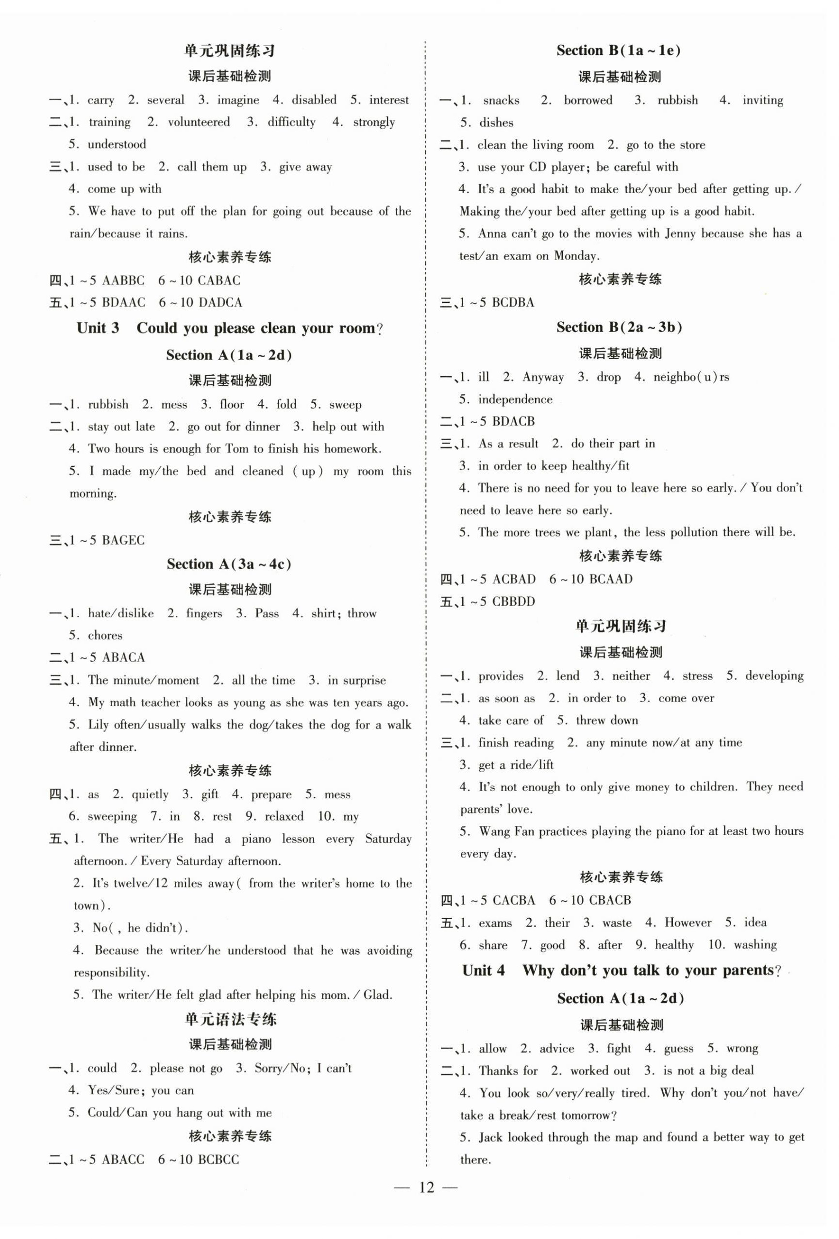 相关练习册答案