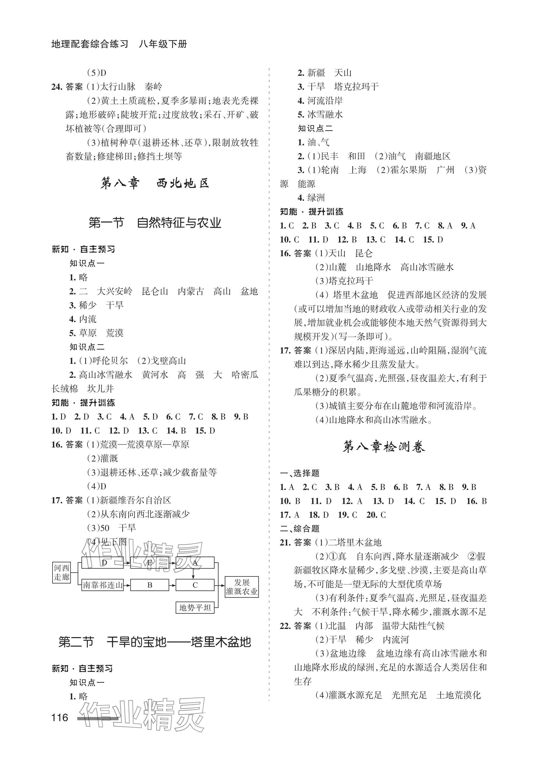 注:目前有些书本章节名称可能整理的还不是很完善,但都是按照顺序排列的,请同学们按照顺序仔细查找。练习册 2024年配套综合练习甘肃八年级地理下册人教版 答案主要是用来给同学们做完题方便对答案用的,请勿直接抄袭。
