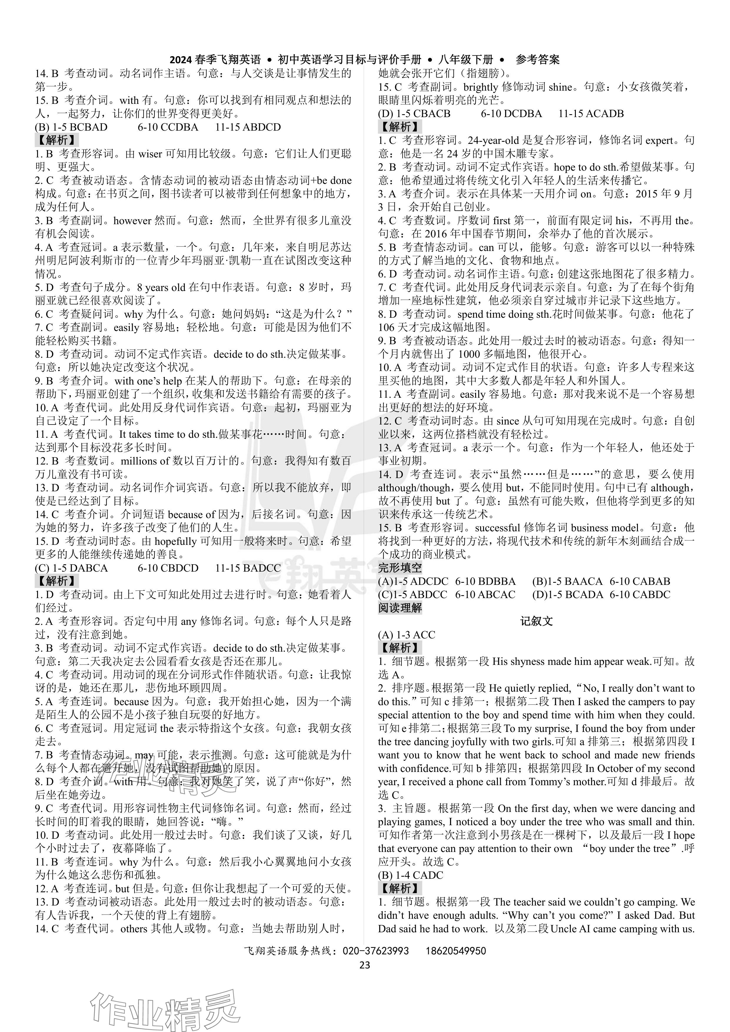 注:目前有些书本章节名称可能整理的还不是很完善,但都是按照顺序排列的,请同学们按照顺序仔细查找。练习册 2024年初中英语学习目标与评价手册八年级英语下册沪教版广州专版 答案主要是用来给同学们做完题方便对答案用的,请勿直接抄袭。