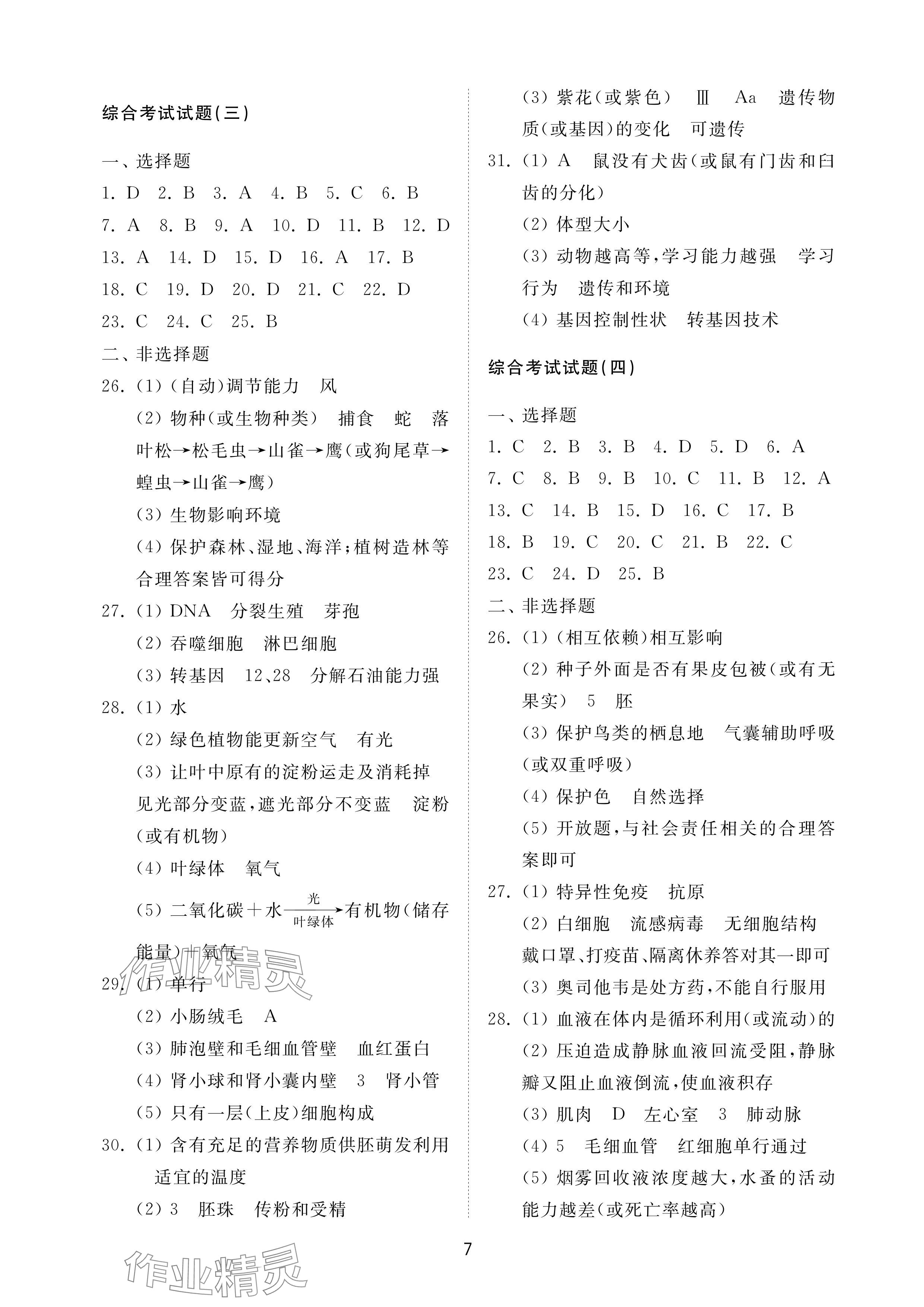 注:目前有些书本章节名称可能整理的还不是很完善,但都是按照顺序排列的,请同学们按照顺序仔细查找。练习册 2024年同步练习册配套检测卷八年级生物下册鲁科版烟台专版54制 答案主要是用来给同学们做完题方便对答案用的,请勿直接抄袭。