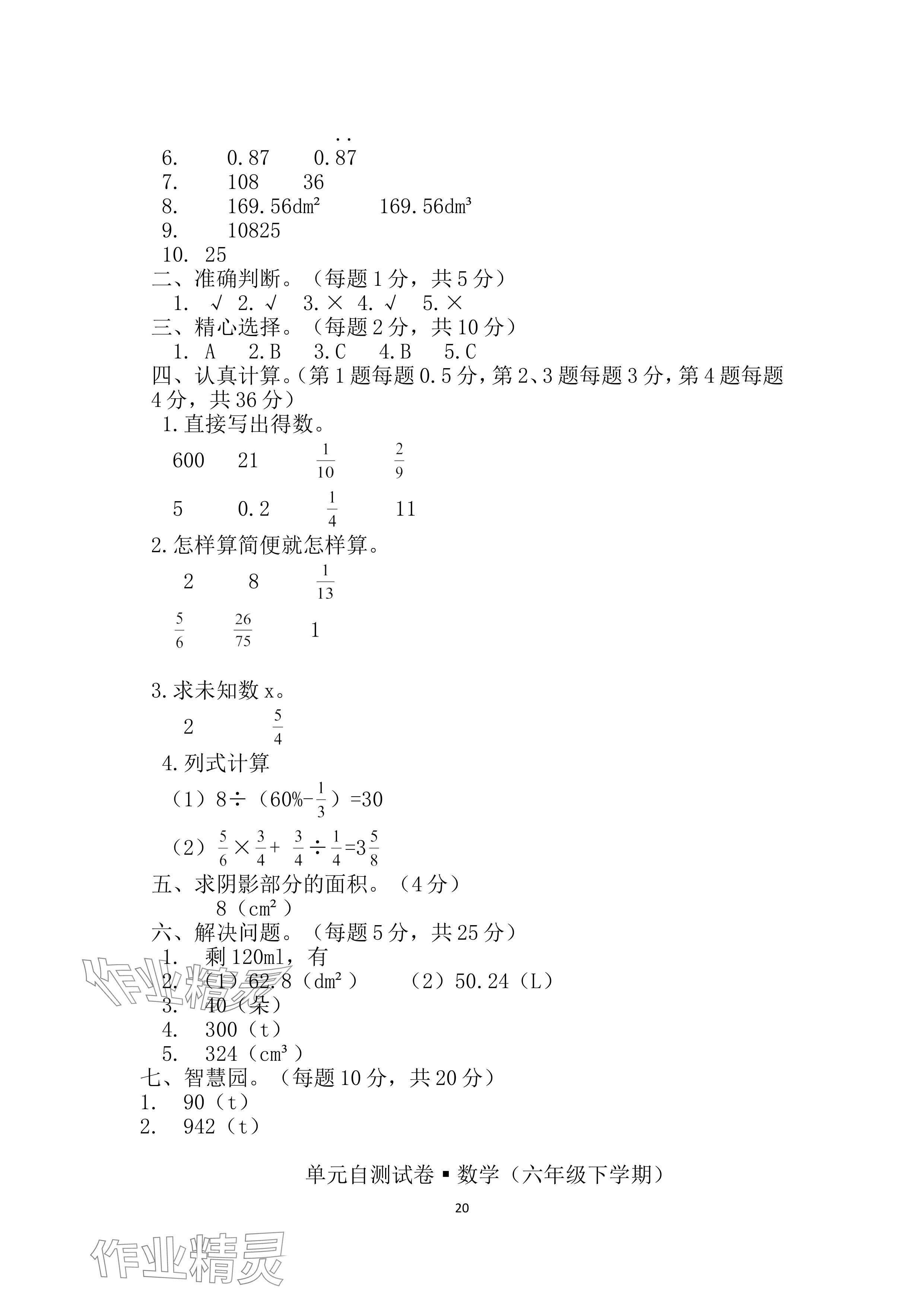 注:目前有些书本章节名称可能整理的还不是很完善,但都是按照顺序排列的,请同学们按照顺序仔细查找。练习册 2024年单元自测试卷青岛出版社六年级数学下册人教版 答案主要是用来给同学们做完题方便对答案用的,请勿直接抄袭。